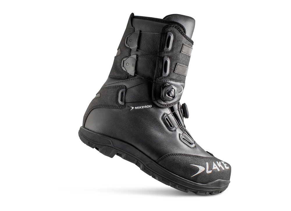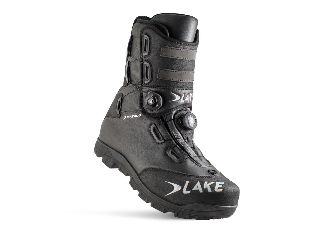 De MXZ400 van Lake is een echte winterschoen voor mountainbikers. De schoen, of eigenlijk laars, is ontworpen op een speciale winterleest wat resulteert in een ruimere schoen. Deze ruimte garandeert een goede bloedcirculatie, zelfs bij het dragen van dikkere sokken. De schoen is bedoelt voor fietsers met gemiddelde tot zeer brede voeten. De dikke rubberen zool voorkomt dat kou snel optrekt en biedt goede grip in gladdere omstandigheden. Het bovenwerk is geïsoleerd met 400g 3M Thinsulate materiaal en voorzien van een waterdicht membraan en DWR coating. Zo blijven je voeten ten alle tijden warm en droog! Twee IP1 BOA-sluitingen waarborgen een nauwkeurig in te stellen sluitmechaniek. De schoen is op kwetsbare plekken extra verstevigd. Lake geeft aan dat de schoenen comfortabel zijn bij temperaturen van -20°C tot 0°C. Koude voeten behoren met deze MTB schoenen dus echt tot het verleden!