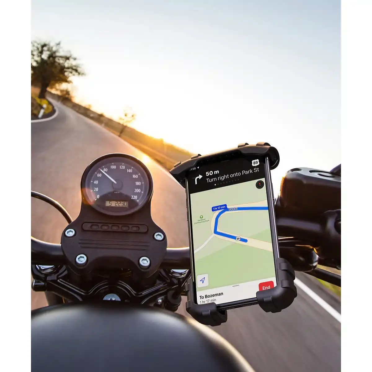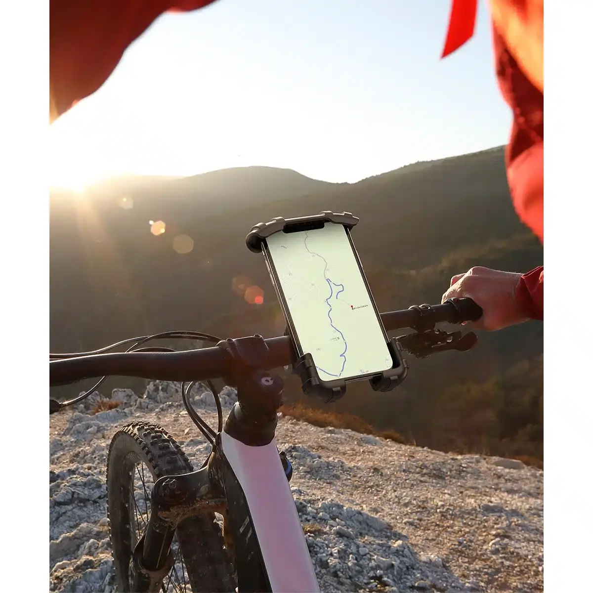 De Lamicall BM02 Smartphonehouder is de perfecte houder voor een ieder die zijn telefoon stevig op zijn fiets wilt meenemen en kunnen bedienen. De houder is voorzien van siliconen pads welke de telefoon beschermen tegen krassen en trillingen. Met de rode schakelaar kan je de telefoon vastzetten in de houder, waardoor je gerust op hobbelige gravelwegen kunt rijden. De houder is zowel horizontaal als verticaal te gebruiken en is compatible met telefoons van 4.7 tot 6.8 inch. Met een maximale dikte van 15mm. De houder is zonder gereedschap te installeren en past op sturen tissen de 15 en 30mm in diameter.