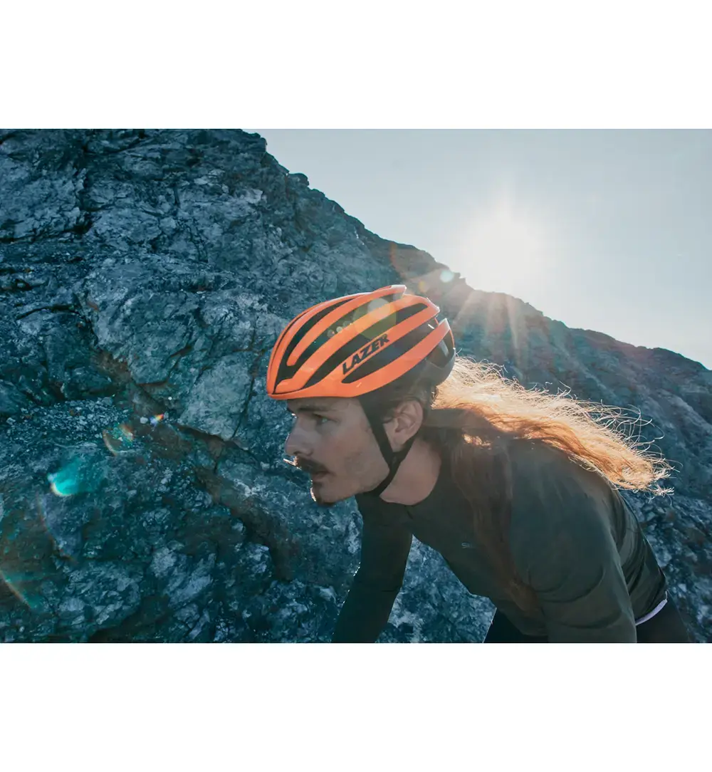 De Lazer Z1 Kineticore Race Fietshelm is een zeer lichte en gestroomlijnde helm voor op de racefiets. De helm is voorzien van een In-Mold constructie met 31 luchtgaten die een optimale ventilatie bieden tijdens warme dagen. Verder is deze helm voorzien van het Advanced Rollsys systeem waarmee je hem perfect afstelt op de omvang van je hoofd. Met de Adjustable Head Basket is deze helm ook in hoogte te verstellen. De fietshelm heeft een verbeterde zijdelinkse bescherming en de Kineticore technologie die zorgt voor een totale bescherming. De zeer aerodynamische vorm samen met de geïntegreerde vleugel bovenop de helm maken deze helm perfect voor snelle ritten!