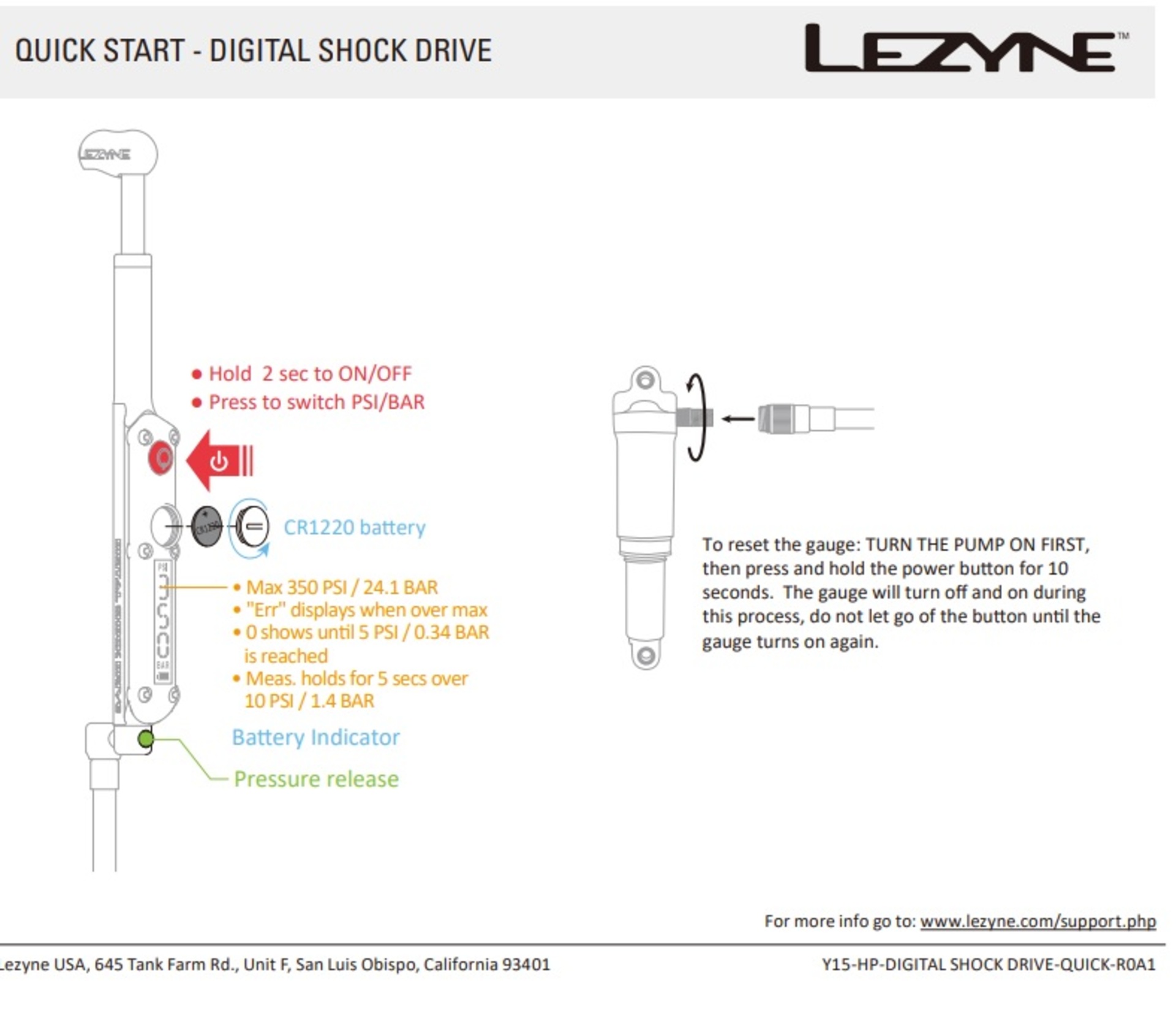 Specificaties Lezyne Digital Shock Drive Voorvorkpomp