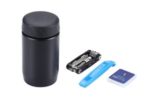 Op 1ste zicht leuk compact bidon welk gemakkelijk mee te nemen in bidonhouder. 1 kan er welgeteld 1 patroon, reserveband, klein setje tools en 2x bandenlifters in kwijt maar dan is het duwen en wringen om het deksel erop te krijgen. Al bij al is het me gelukt.