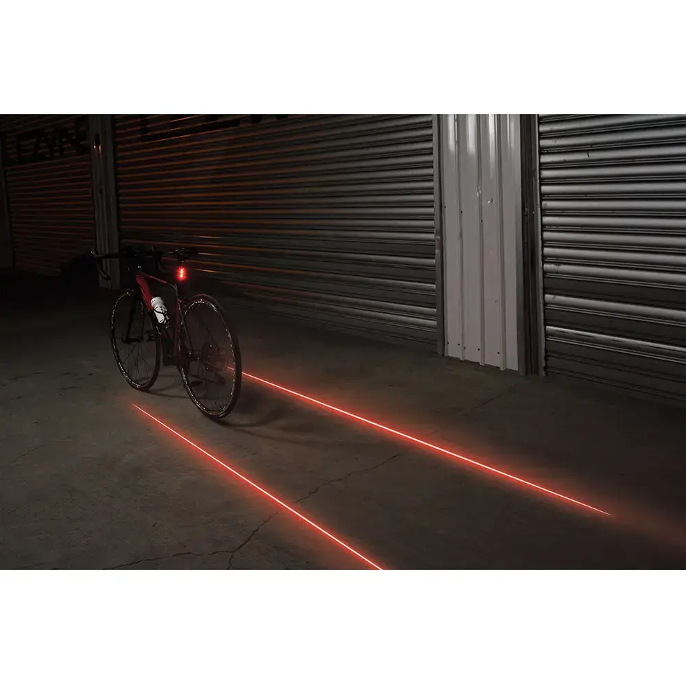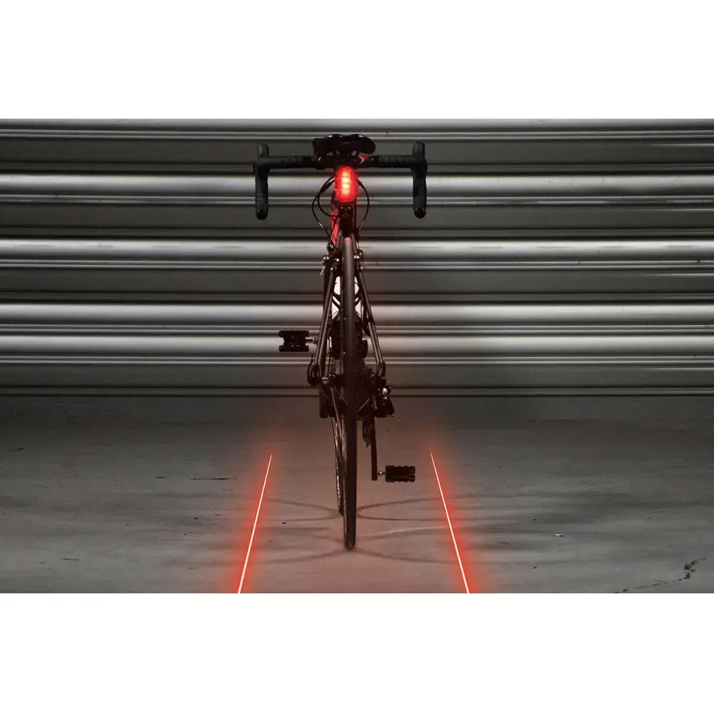 Met het Lezyne Led Laser Drive achterlicht ga jij veiliger dan ooit de weg op. De laser die in deze achterlamp verwerkt zit, projecteert twee veiligheidslijnen op het wegdek achter je fiets, zodanig dat achteropkomend verkeer jou altijd tijdig kan zien. Je monteert dit compacte achterlicht eenvoudig op iedere zadelpen. Met een maximale lichtsterkte van 40 Lumen en de 180 graden zichtbaarheid ben jij er zeker van dat je gezien gaat worden. De lamp is waterbestendig, licht van gewicht en aerodynamisch ontworpen en tevens op te laden via Micro-USB.