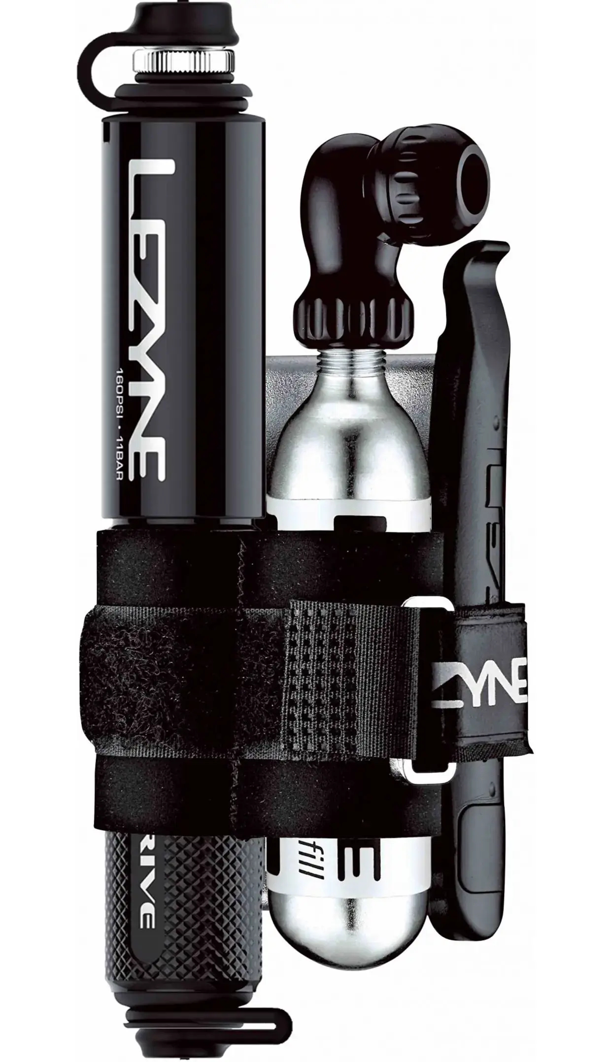 Met de Pocket Drive HV Loaded Minipomp ben jij altijd voorbereid op een lekke band. Als je een keer lek rijdt, dan kun je maar beter voorbereid zijn. De Pocket Drive HV bestaat uit een pakket die alle benodigde spullen bevat: een minimpomp, een Co2 pompje met patroon en een bandenlichter. De producten zijn handig gebundeld met een klittenbandstrap, waardoor je ze in één keer in je achterzak kunt steken. Het handpompje is erg compact en licht. Desondanks pomp je er vrij gemakkelijk en efficiënt een bandje mee op: een ongeëvenaarde prestatie voor een pompje van deze lengte! Het is gemaakt van duurzame CNC-aluminium en heeft een geribbeld handvat, zodat je stevig en gecontrolleerd kunt pompen. De pomp is zowel met Schrader als Presta ventielen te gebruiken.