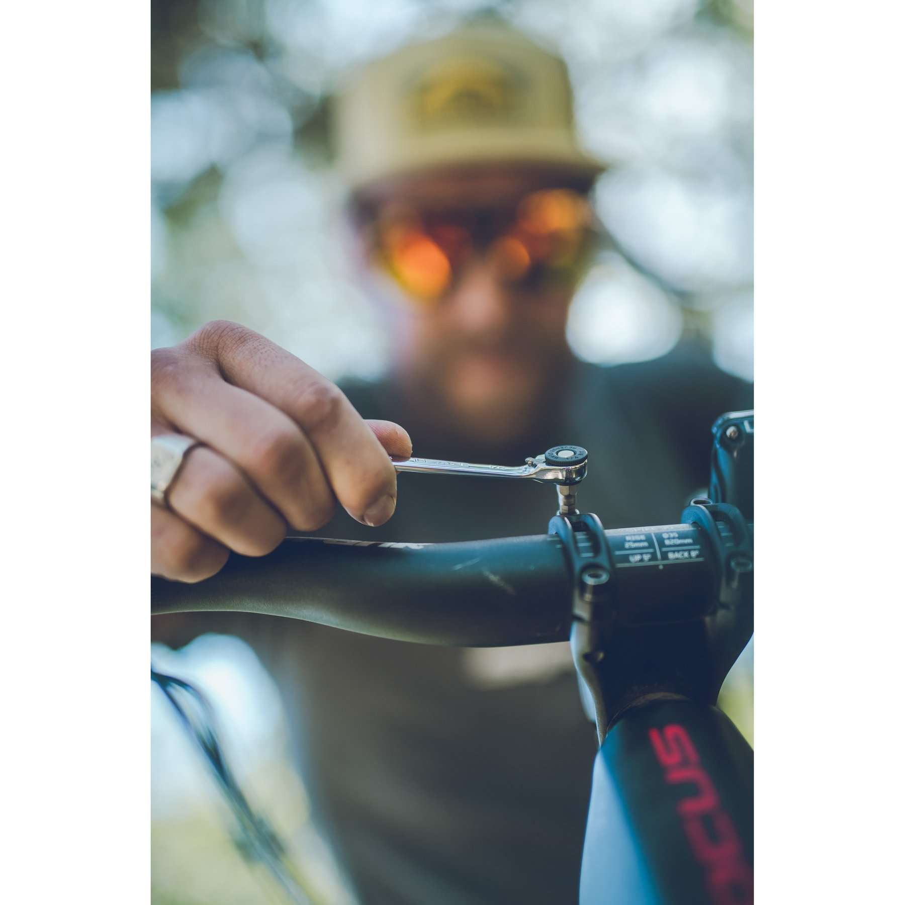 De Lezyne Ratchet Drive is een duurzame en compacte ratelsleutel voor fietsen. De sleutel wordt geleverd met supersterke CRV-bits. Handig is de meegeleverde verlengingsadapter voor schroeven en moeren waar je lastig bij kunt. Een geïntegreerde magneet houdt de gereedschapsbits op hun plaats en een praktische draagtas wordt meegeleverd.
