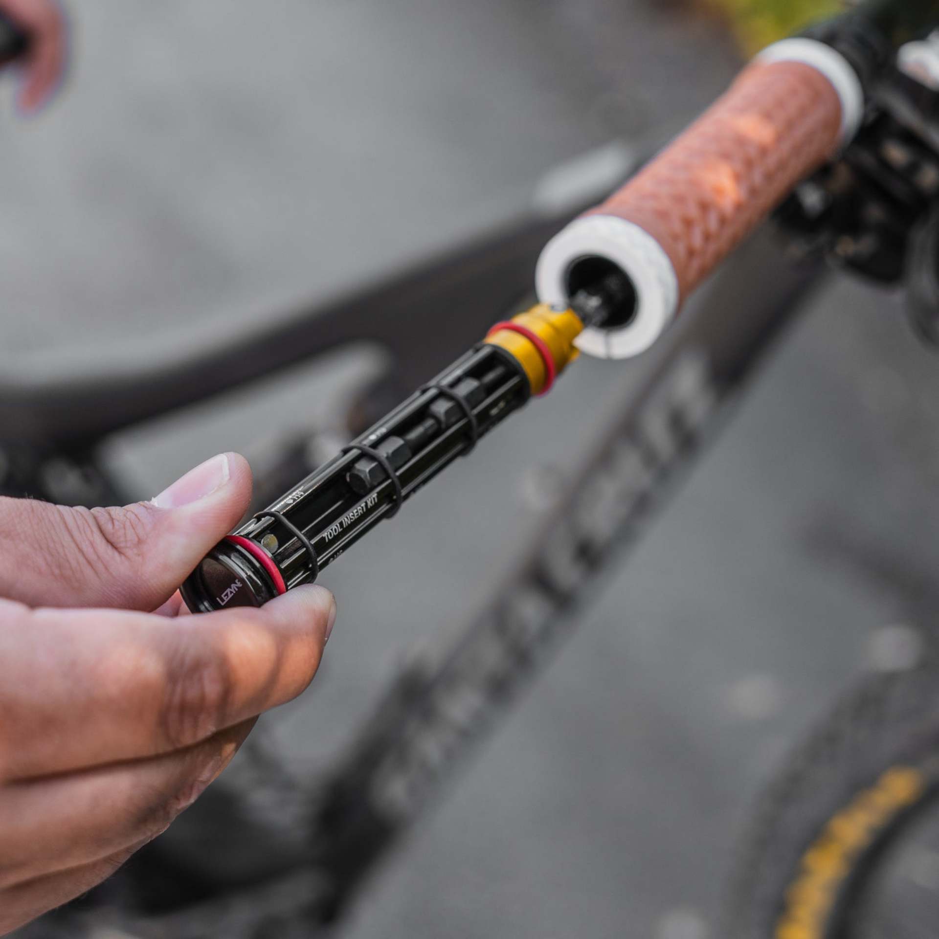Deze Lezyne Tool Insert Kit is een multitool welke je in je stuur kunt meenemen! De tool past in je stuur op de plek van de stuurdop en past op vrijwel alle sturen. De tool is gemaakt van duurzaam aluminium en de bitjes zijn gemaakt van gehard staal. Deze small uitvoering bevat 5 verschillende bitjes. Een inbus met de maten 4,5,10mm, een kruiskop schroevendraaier en T25 Torx. Wil jij je tool graag uit het zicht houden? Dan is deze multitool echt iets voor jou!