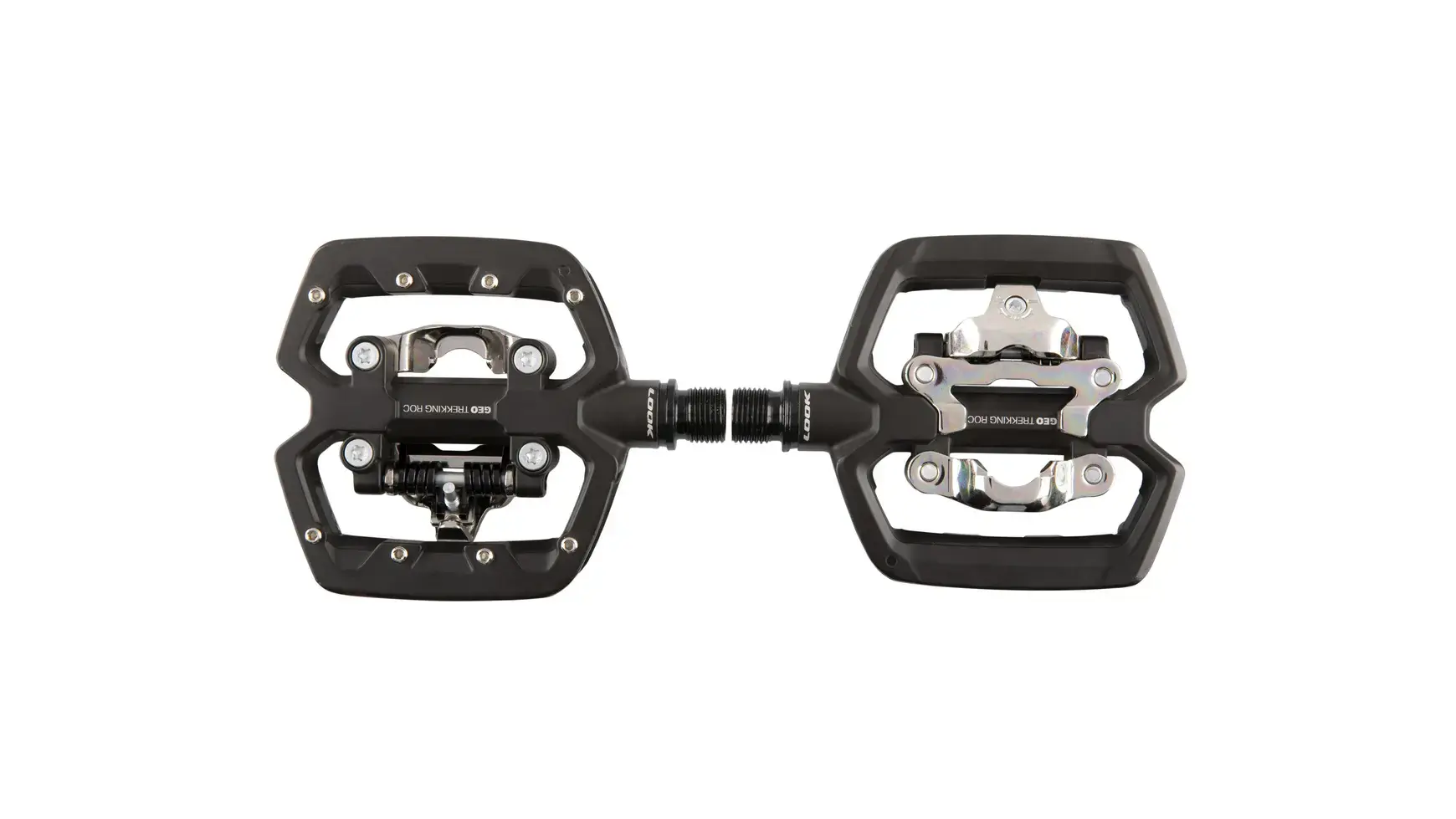 De Geo Trekking Pedalen van LOOK zijn speciaal gemaakt voor veelzijdig gebruik. Je kunt ze aan twee kanten gebruiken: de platte kant is ideaal voor gewone schoenen, de andere kant werkt met SPD-klikschoenen (X-TRACK EASY plaatjes).Perfect dus voor woon-werkverkeer, toerfietsers, stadsfietsers en avonturiers die afwisselend rijden op asfalt, grind of onverharde paden.