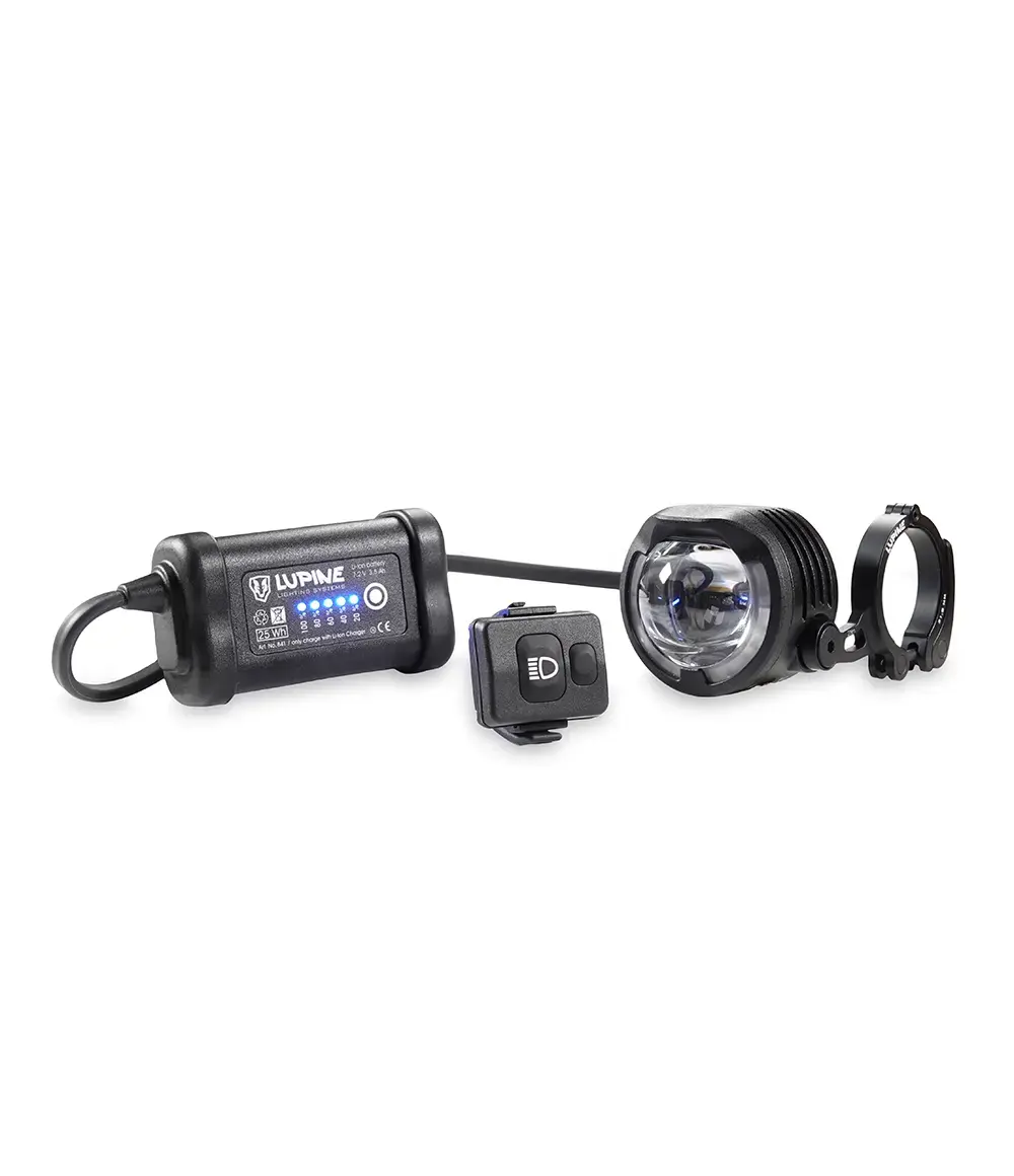 De SL AF 4 koplamp van Lupine vergroot jouw zicht op donkere dagen! De lamp heeft namelijk een grootlicht en dimlicht stand, zodat je in alle situaties voorzien bent van voldoende zicht. Dankzij de afstandsbediening ben je van alle gemakken voorzien. Zo kan je de lamp bedienen zonder je handen van het stuur af te halen. De 3,5 Ah SmartCore batterij gaat erg lang mee wat de lamp ideaal maakt voor bikepackingavonturen!