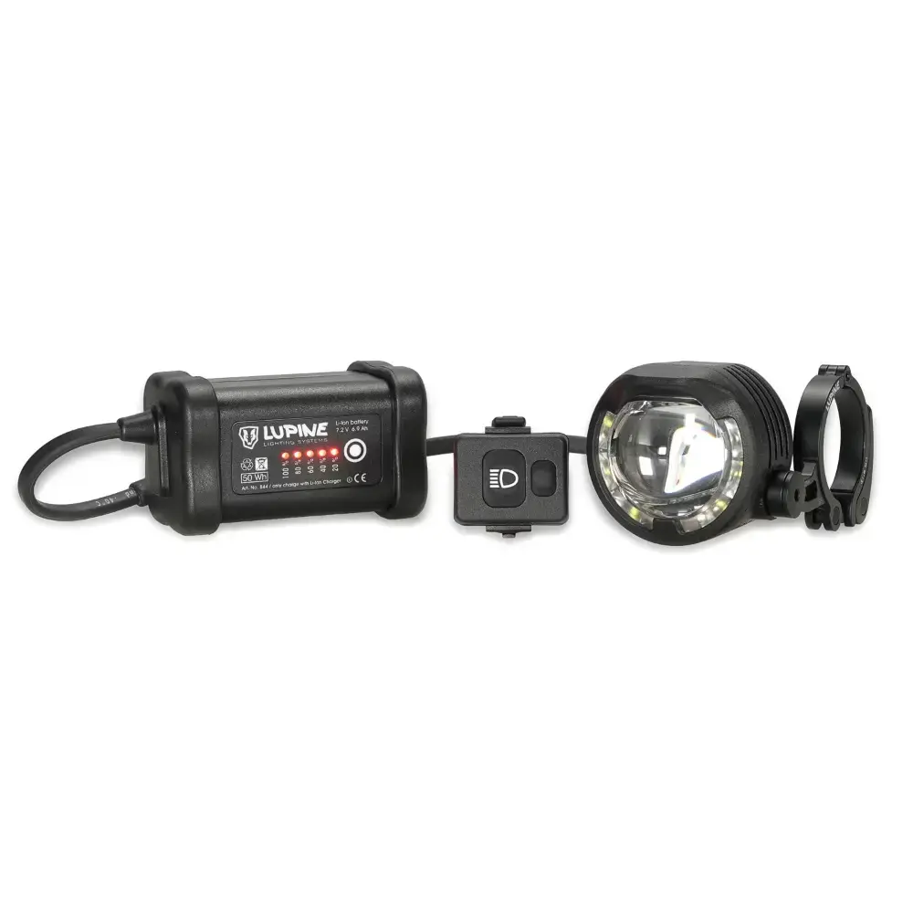 De SL AF 7 koplamp van Lupine vergroot jouw zicht op donkere dagen! De lamp heeft namelijk een grootlicht en dimlicht stand, zodat je in alle situaties voorzien bent van voldoende zicht. Dankzij de afstandsbediening ben je van alle gemakken voorzien. Zo kan je de lamp bedienen zonder je handen van het stuur af te halen. De 6,9 Ah SmartCore batterij gaat erg lang mee wat de lamp ideaal maakt voor bikepackingavonturen!