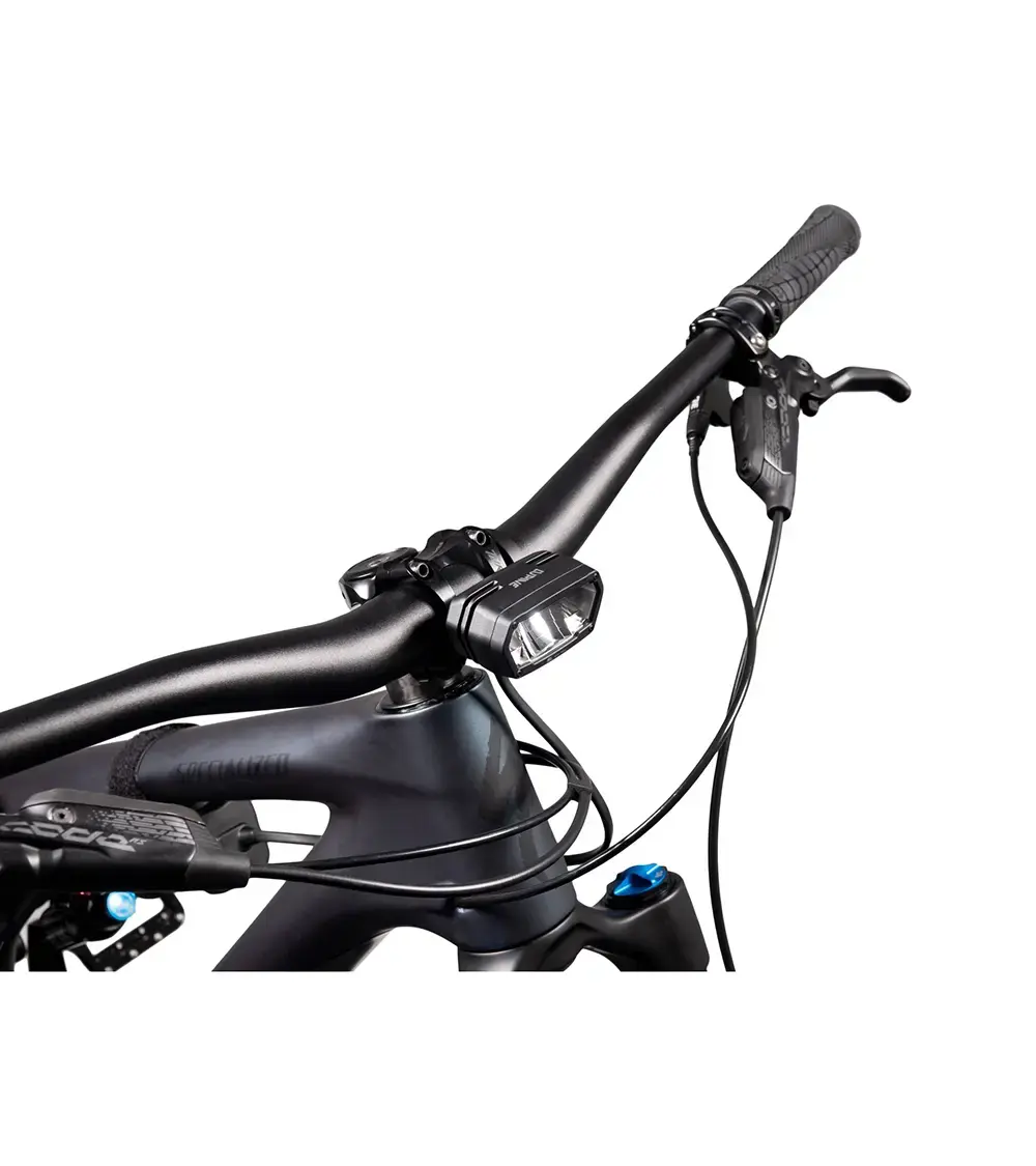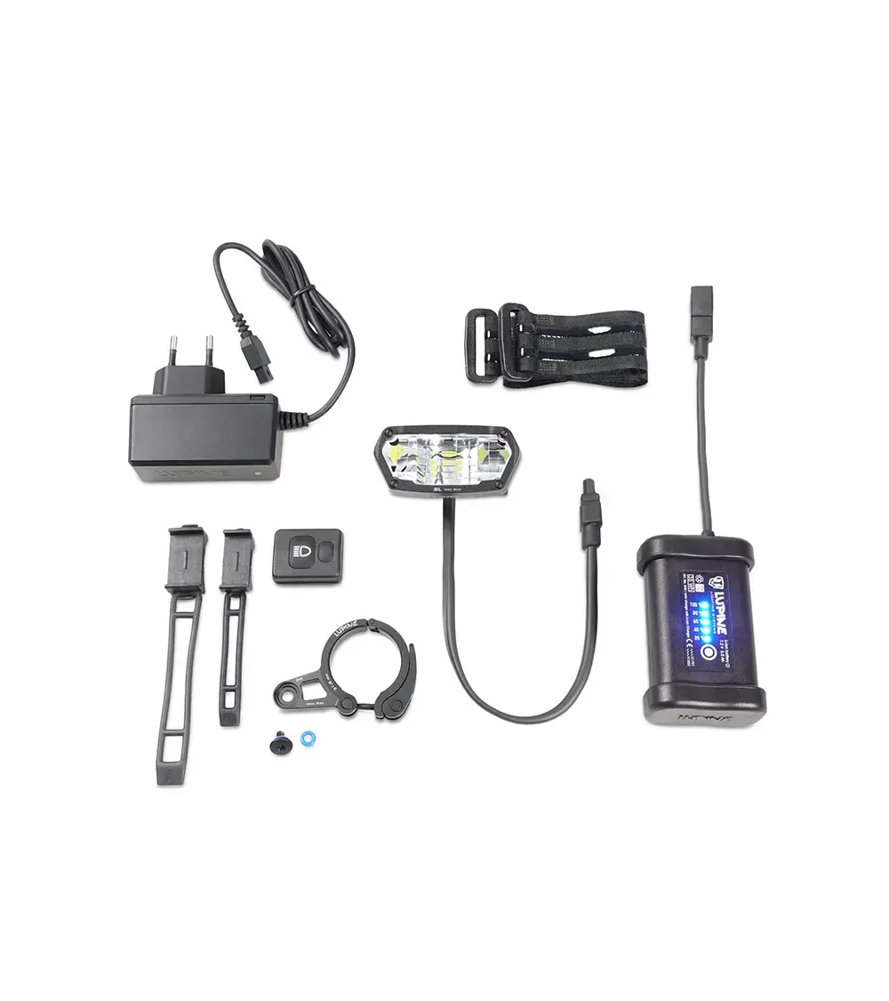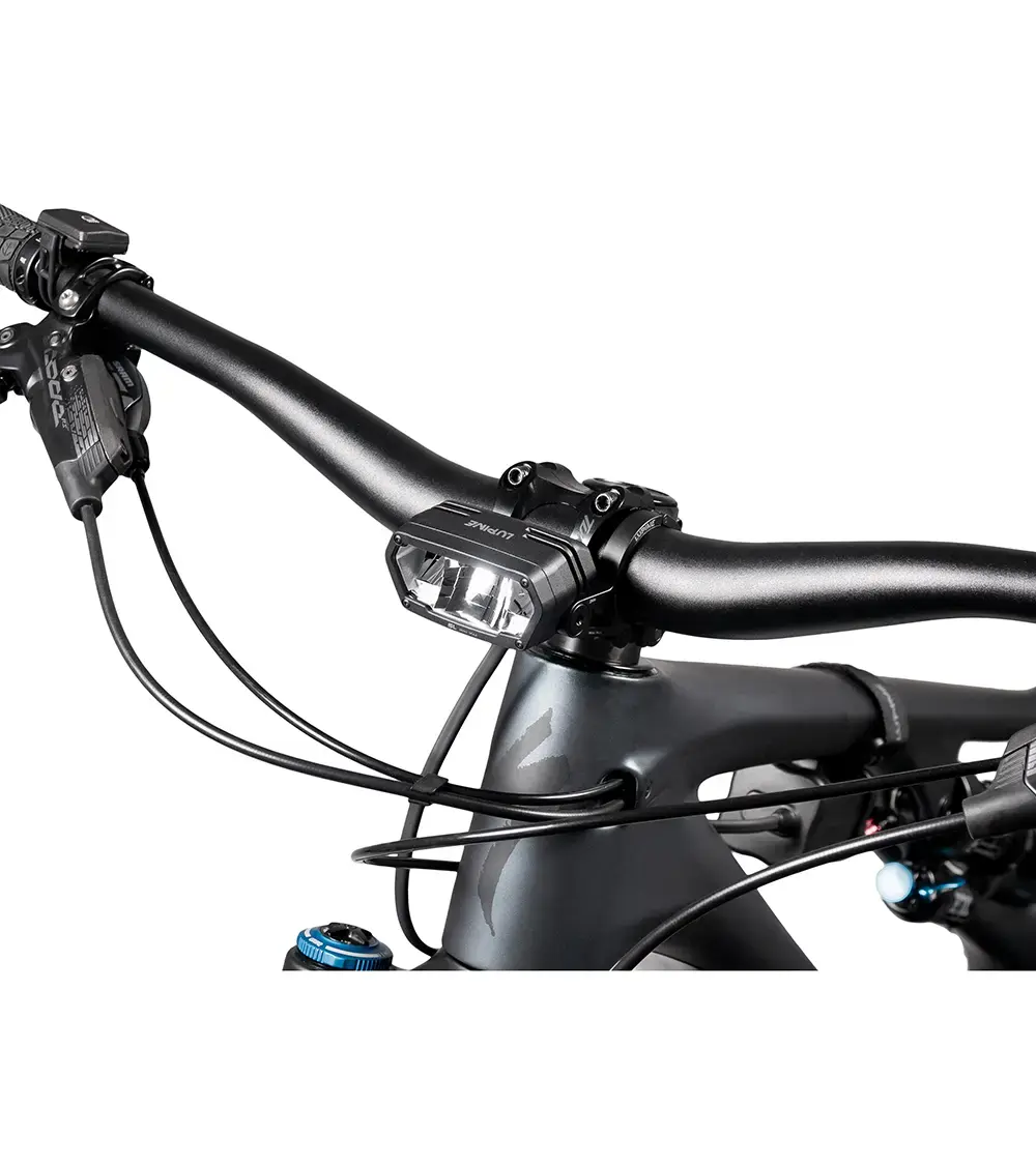 De SL Minimax AF 7 Ah koplamp van Lupine brengt licht in de duisternis! De lamp heeft namelijk een grootlicht, dimlicht en dagrijlicht stand, zodat je in alle situaties voorzien bent van voldoende zicht. Dankzij de afstandsbediening ben je van alle gemakken voorzien. Zo kan je de lamp bedienen zonder je handen van het stuur af te halen. De lamp heeft een maximale brandtijd van 25 uur, waardoor je extreem lang de paden voor je kan verlichten. Dat is bijvoorbeeld ook ideaal voor bikepackingavonturen! De sensoren in de lamp zetten de lamp automatisch aan op low beam wanneer het donker wordt. De aluminium behuizing maakt de lamp zeer waterbestendig en zeer stevig, ideaal wanneer je gaat mountainbiken, dan moet de lamp we tegen een stootje kunnen.