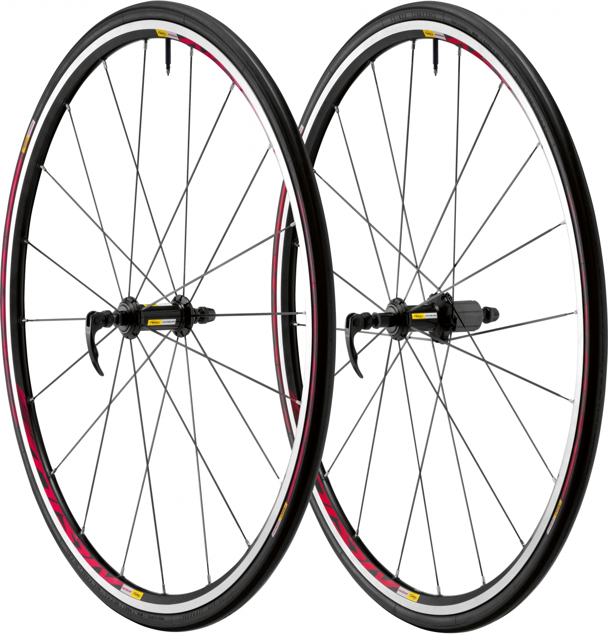 Het instapmodel van Mavic. Met Mavic kwaliteit, de Mavic look, en Mavic toptechnologie voor de lichtste road wielsets. Met rode stickers op de velg en rode opdruk op de banden