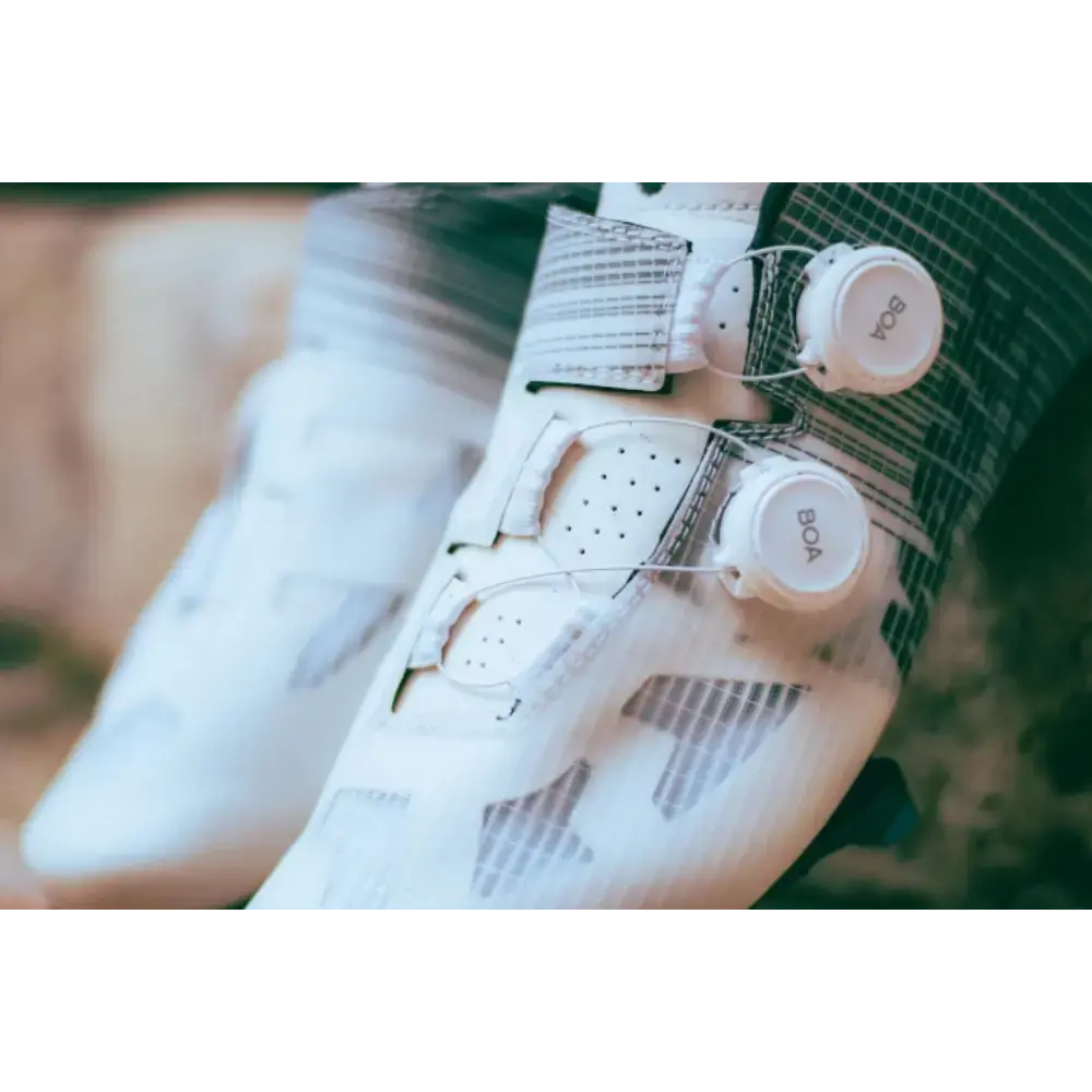 De Mavic Cosmic SLR wielrenschoenen combineren een extreem licht gewicht met hoogwaardig comfort en ventilatie, speciaal ontworpen voor topprestaties in de warmste omstandigheden. Het premium Matryx® geweven bovenwerk biedt optimale ondersteuning en stabiliteit, terwijl het BOA® Fit System met dubbele L6-sluitingen zorgt voor een nauwkeurige pasvorm op maat. De carbon-composiet zool met een stijfheidsindex van 80/100 garandeert een efficiënte krachtoverdracht. Strategisch geplaatste ventilatieopeningen, zowel in het Matryx® materiaal als in de voorzijde van de zool, zorgen voor uitstekende ademende eigenschappen tijdens intensieve ritten.