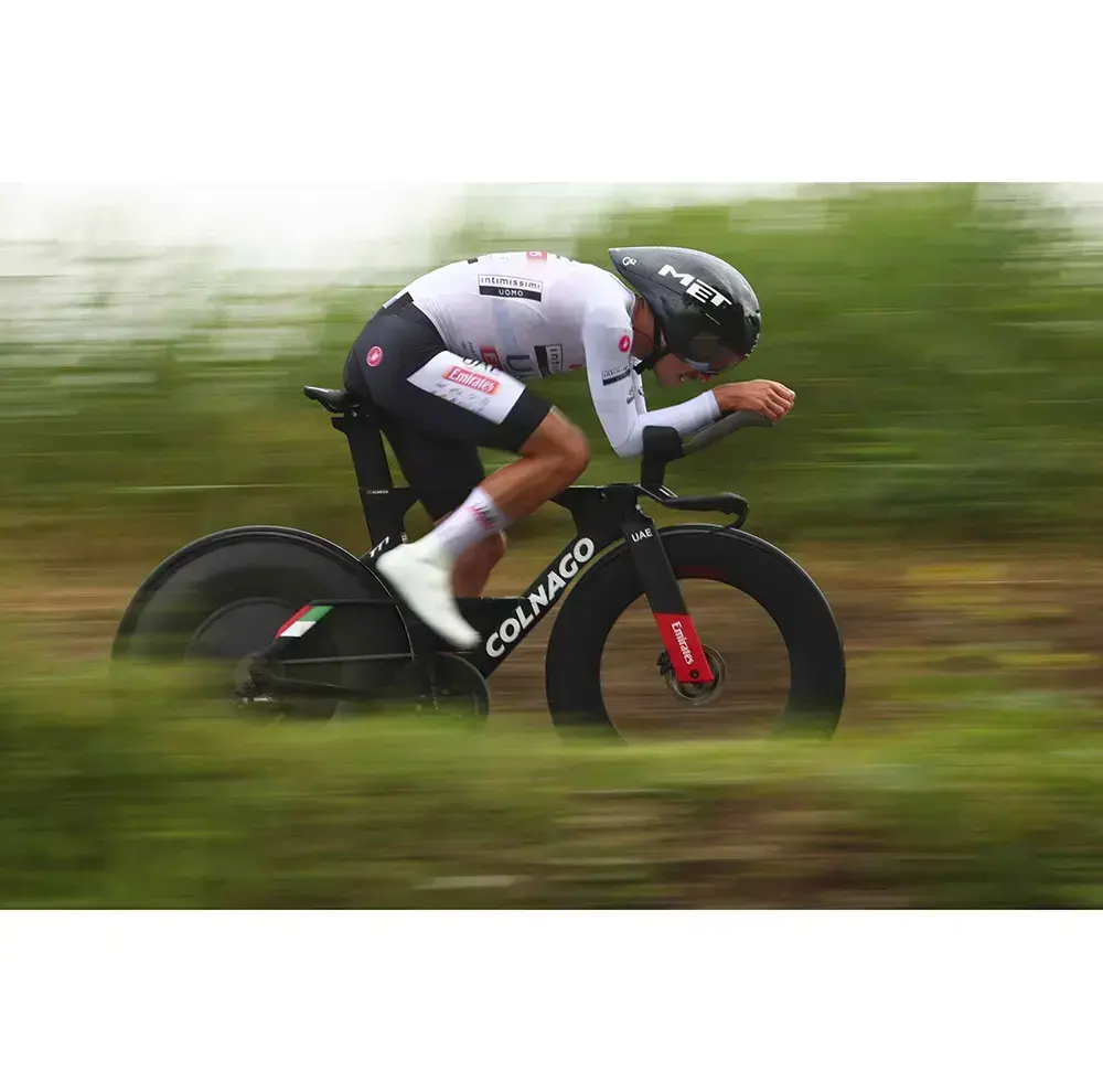 De Drone Wide Body Tijdrithelm van MET is een super aerodynamische helm die uitgebreid is getest in de windtunnel. Wat opvalt aan de helm is dat deze extra breed is zodat de lucht perfect over de schouders geleid wordt. Hierdoor wordt de luchtstroom geoptimaliseerd en wordt turbulentie gereduceerd. Je bespaart al snel zo’n 10 Watt bij een snelheid van 50 kilometer per uur. De helm is uitgerust met een magnetisch, afneembaar vizier. Bij een eventuele valpartij ben je super goed beschermt. Dit komt door de stevige en betrouwbare binnen- en buitenschaal die klappen goed absorberen.