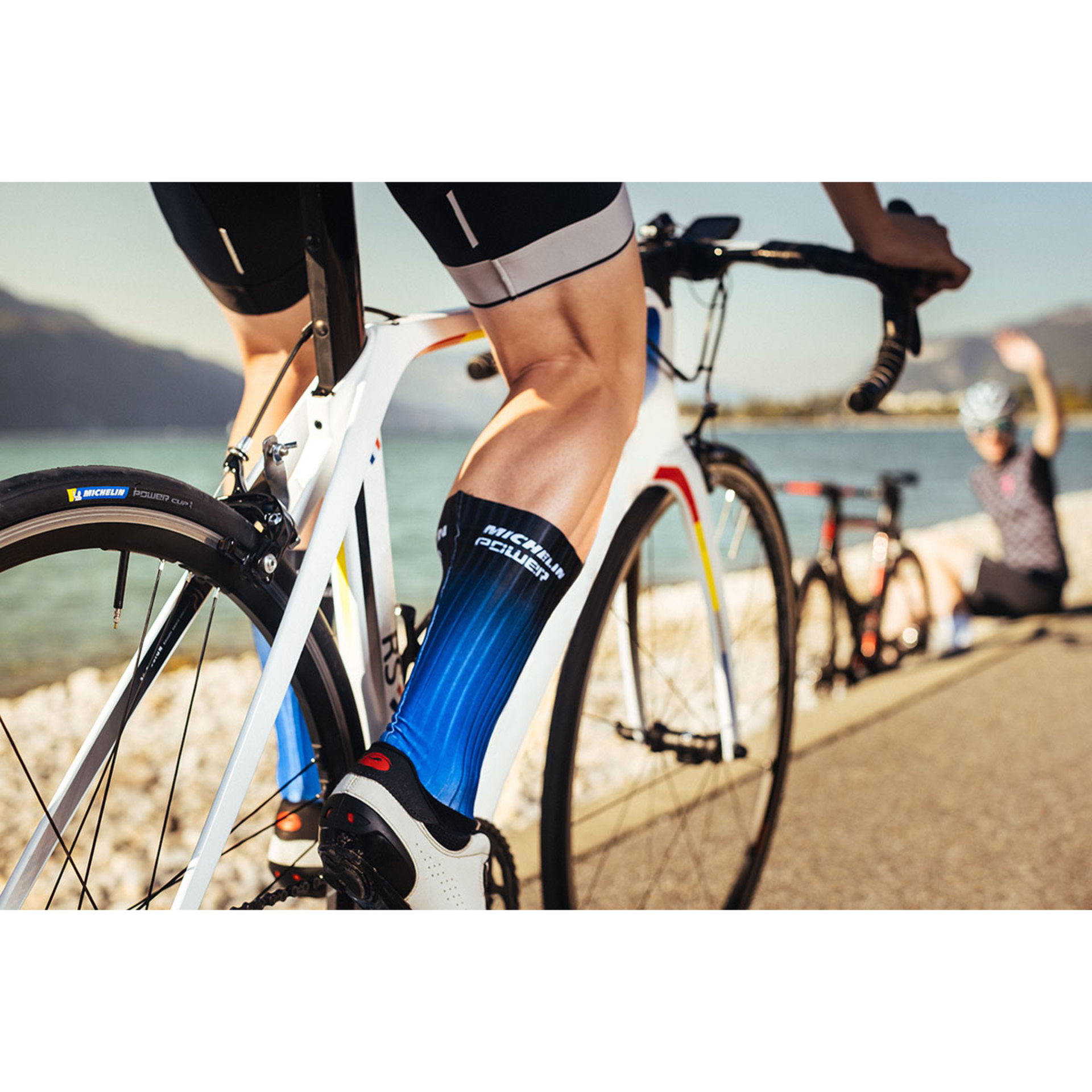Met de Power Cup racebanden van Michelin boost je je zelfvertrouwen tijdens wedstrijden en trainingen, al was het maar omdat ook profs ermee rijden. Team Cofidis rijdt dit jaar (2022) in de competitie ook met de Power Cup banden. De banden zijn ontwikkeld met kennis uit de MotoGP wereld. Snelheid en rendement zijn de belangrijkste kenmerken van de Power Cup, voeg dit samen met lichtheid en lekbestendigheid en je snap dat je met deze banden vol vertrouwen de trainingen en wedstrijden tegemoet kunt treden. Het 3x120 TPI Aramid Shield karkas zorgt voor de kenmerken licht en betrouwbaar, terwijl het GUM-X compound zorgt voor fantastische wegligging en stabiliteit in zowel droge als natte omstandigheden.