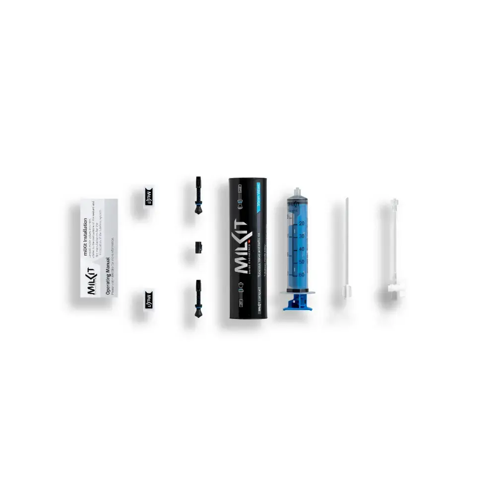 Met de Milkit Tubeless Compact 35 ventielkit wordt tubeless maken een fluitje van een cent! Je krijgt alles wat je nodig hebt – met uitzondering van latex – in één compleet pakket. Dit pakket is bedoeld voor lage velgen. De meegeleverde vulspuit is geschikt om je band voor het eerst te vullen met latex, maar is ook geschikt om de oude latex uit je velg te halen. Dit maakt opnieuw tubeless maken geen rommelige klus meer.