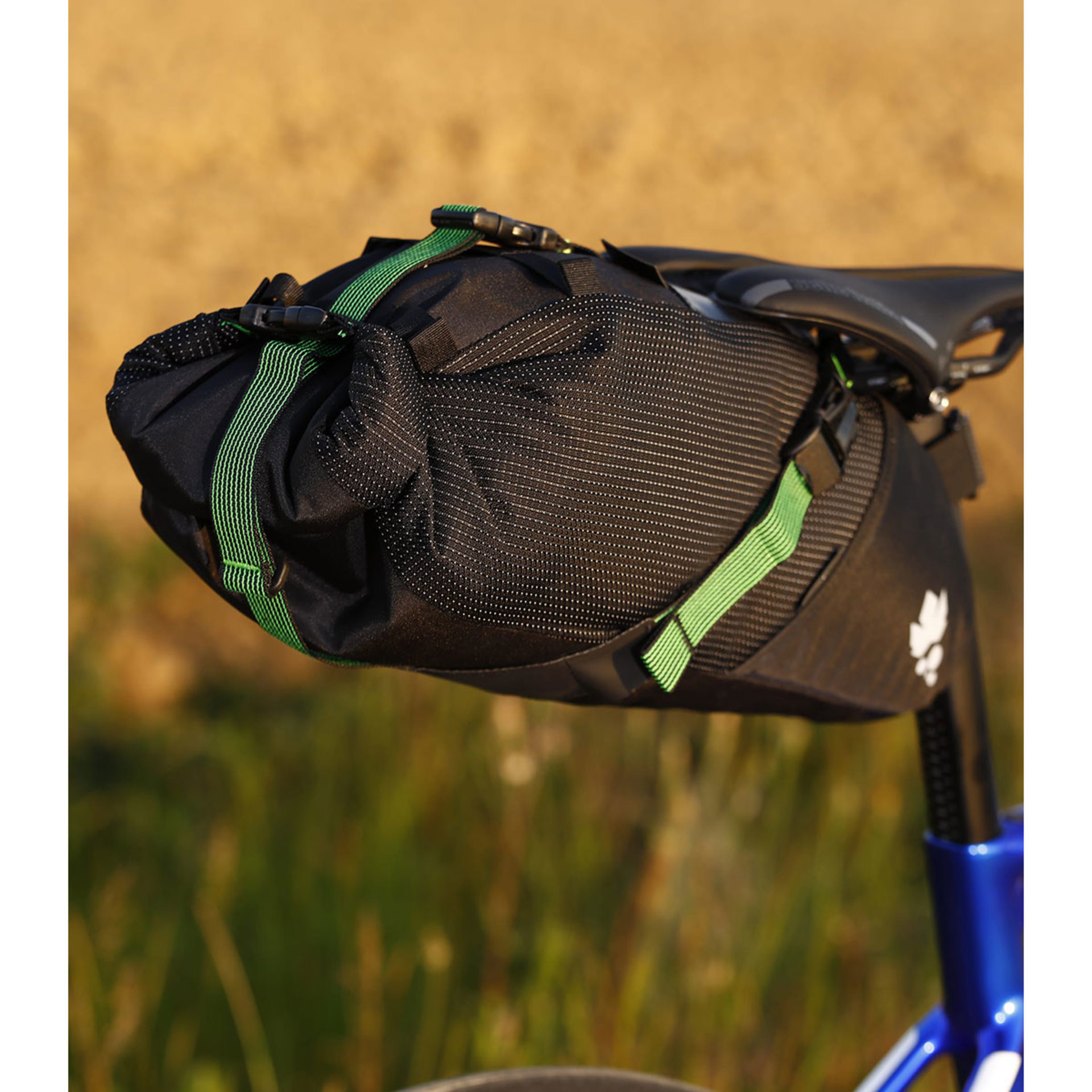 De Cluster 7 Road zadeltas van Miss Grape is een must-have voor wie langere tochten wil maken met de racefiets. Voor een trip met overnachting bijvoorbeeld is de Cluster 7 een onmisbaar item. De zadeltas is extra verstevigd aan de onderkant waardoor deze tegen wielcontact kan en tegen opspattend grind, gruis en vuil. De zadeltas fungeert daarmee ook als spatbord zodat je rug droog en schoon blijft. De tas wordt aan de zadelpen bevestigd met twee klittenbandriemen die aan de binnenkant zijn bedekt met een antislipmateriaal dat een uitstekende grip garandeert en het mogelijke schurende effect op de zadelpen met 50% vermindert. De tas is volledig waterdicht uitgevoerd.