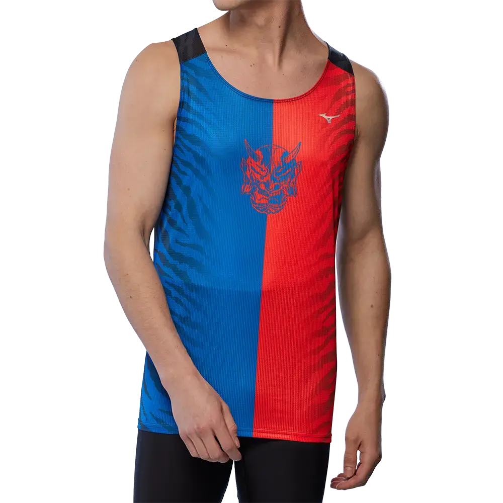 Mizuno DryAeroFlow Graphic Hardloopshirt zonder mouwen Rood/Blauw Heren