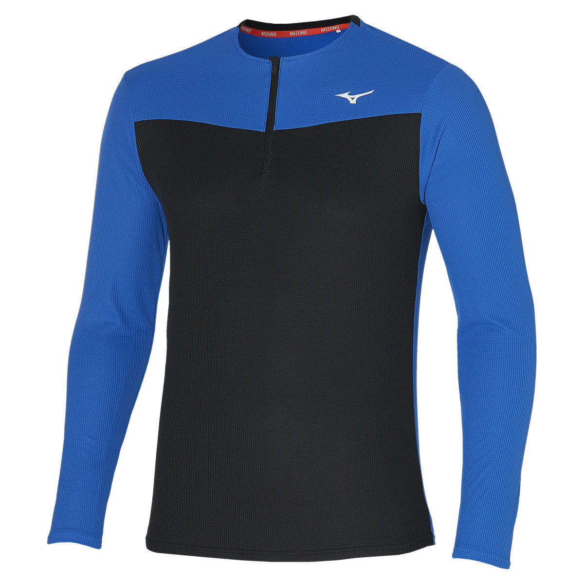 Mizuno DryAeroFlow HZ Hardloopshirt Lange Mouwen Zwart/Blauw Heren