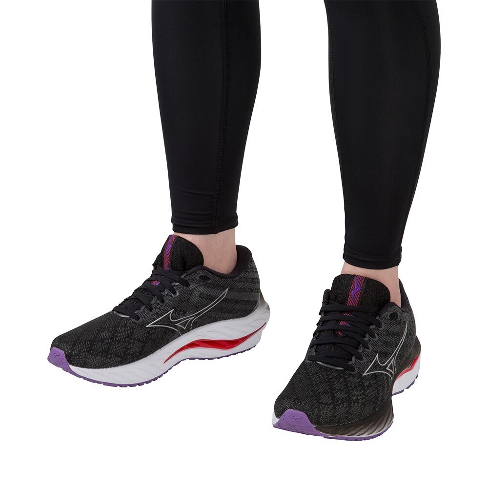 Mizuno Wave Inspire 19 Hardloopschoenen Zwart/Zilver/Rood Dames