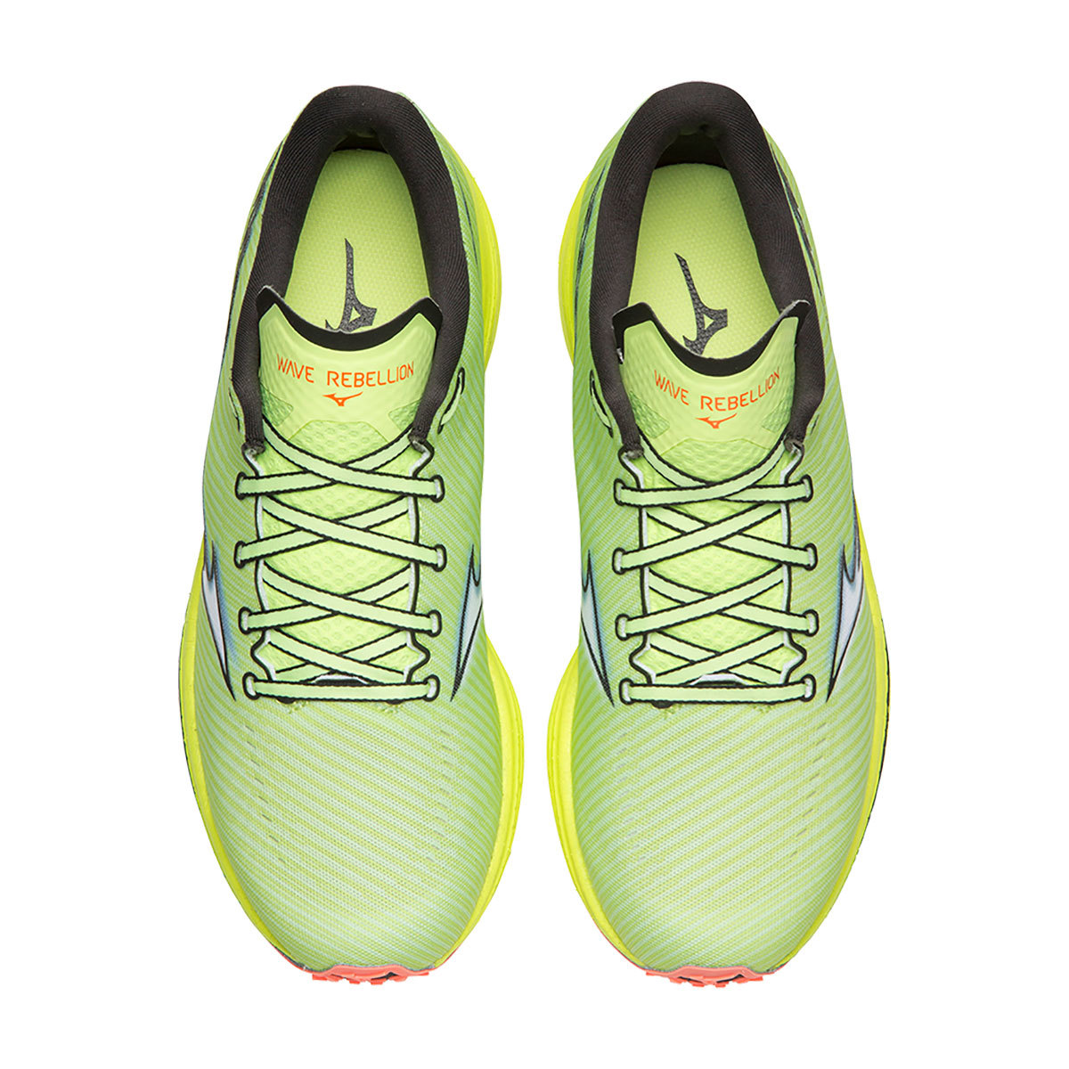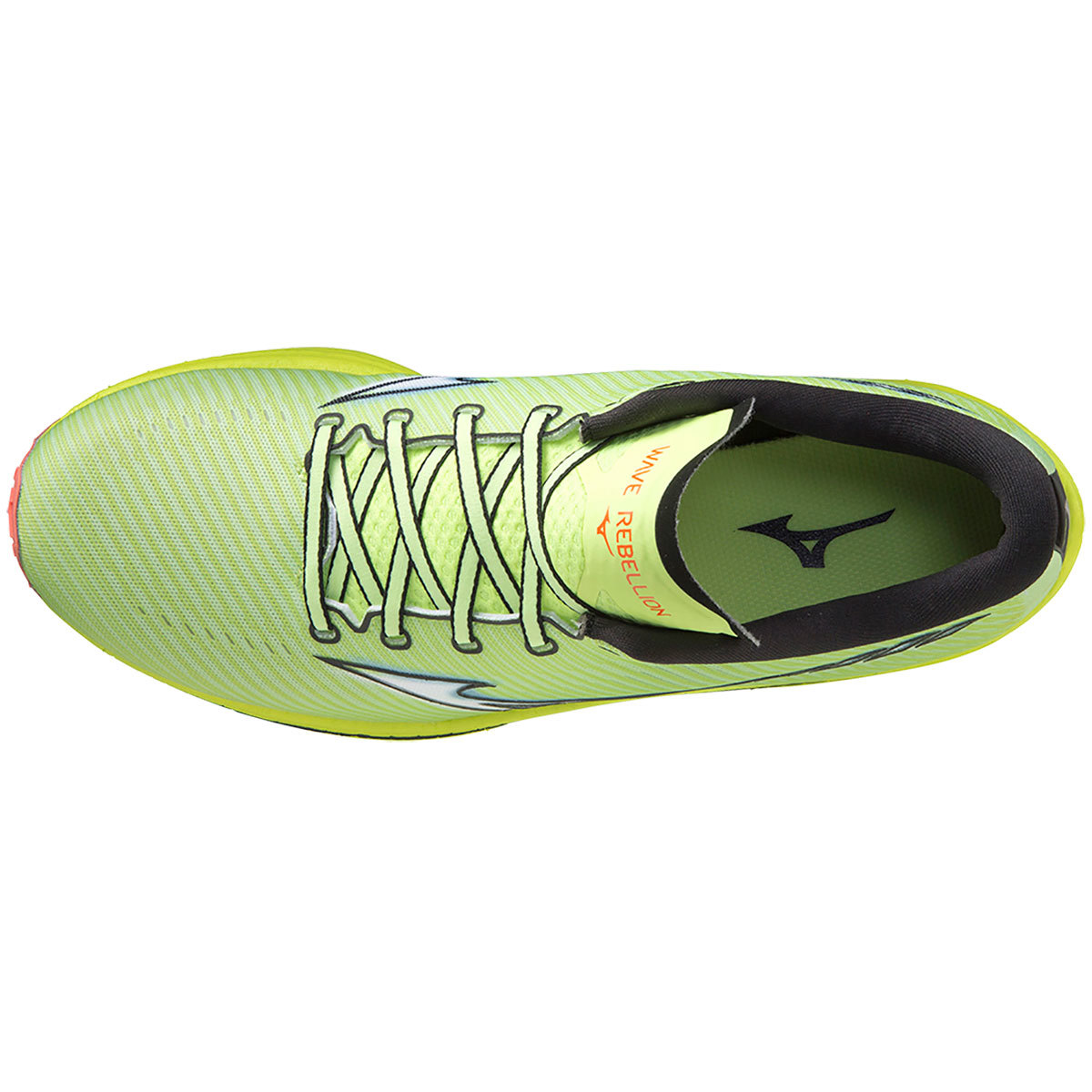 De Wave Wave Rebellion hardloopschoen is gemaakt voor hardlopers die hun PR willen verbeteren! De toevoeging van een carbon plaat zorgt voor een enorm afzetvermogen. De plaat is een stuk groter dan op andere schoenen van Mizuno, waardoor hij meer ondersteuning geeft terwijl jij snelheid maakt. Vanaf het midden tot de tenen is Mizuno Wave-materiaal aangebracht. Dit biedt ondersteuning en demping. De bovenzijde is uit één laag mesh materiaal, wat zorgt voor een goed ademend vermogen.