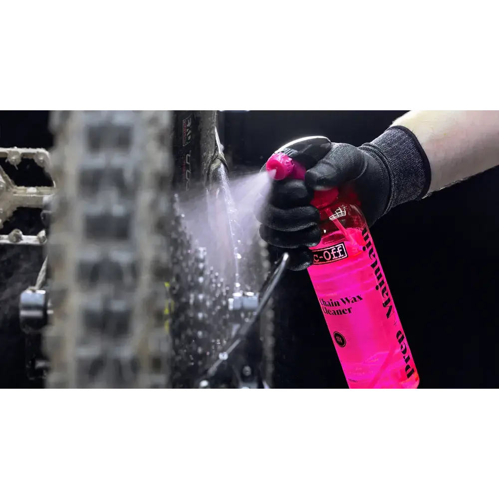 Maak kennis met Muc-Off Chain Wax Cleaner, jouw geheime wapen om het maximale uit gewaxte kettingen te halen. Deze reiniger is speciaal gemaakt voor het voorbereiden en onderhouden van gewaxte kettingen. Of je nu fabrieksvet van een gloednieuwe ketting verwijdert vóór je eerste waxbeurt of oude waxresten weghaalt voor een nieuwe dip of druppelbeurt, Chain Wax Cleaner doet het snel, schoon en zonder gedoe.