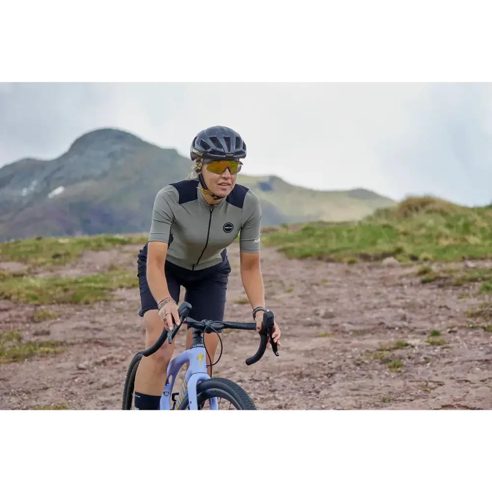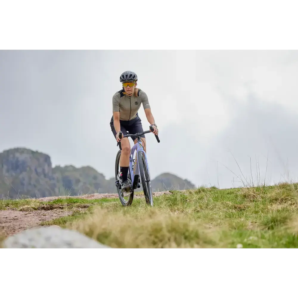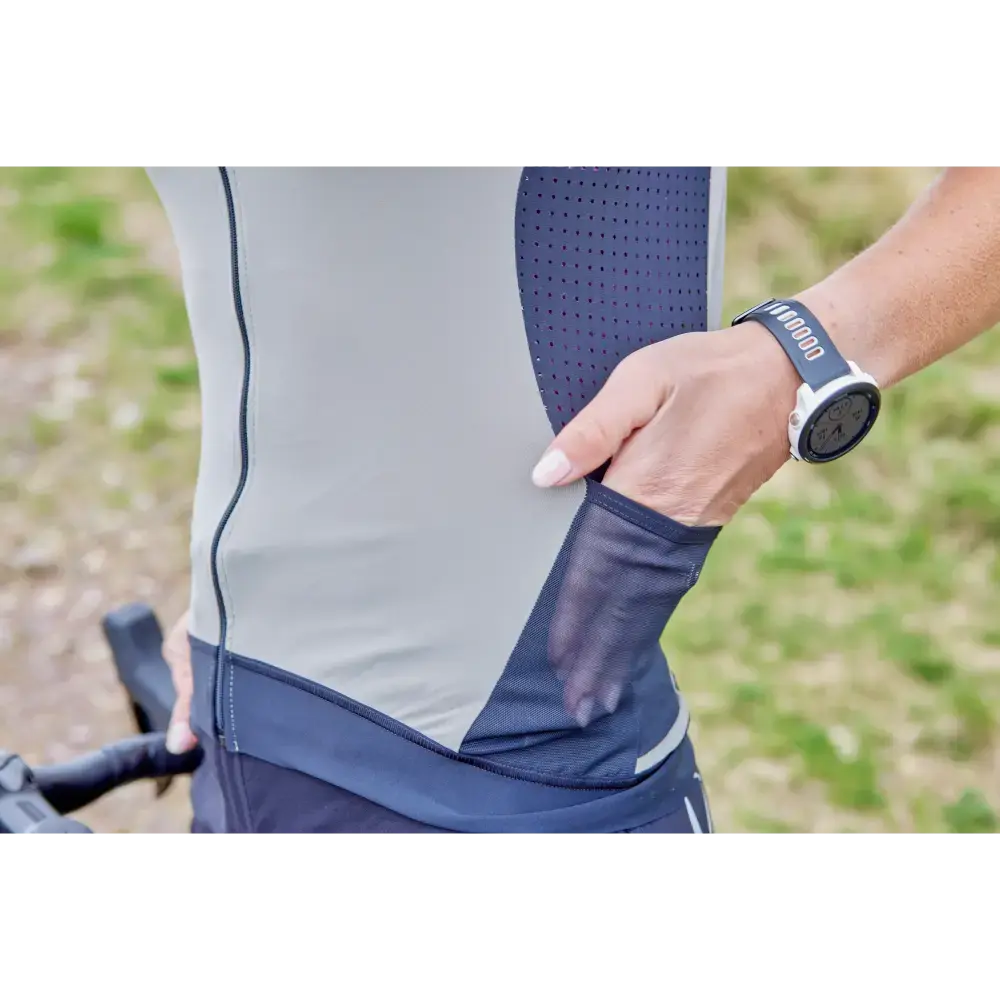 Het Nalini Five Pockets fietsshirt, met een specifieke damespasvorm, is speciaal ontworpen voor lange gravelritten. Het is gemaakt van een compacte, dikke en voorgeverfde stof die maximale UV-bescherming (UPF 50+) garandeert. Wat dit shirt echt uniek maakt, zijn de vijf zakken: drie traditionele achterzakken en twee extra zakken aan de zijkanten, waardoor je meer dan genoeg opbergruimte hebt. Micro-perforaties in de okselstreek bevorderen de luchtstroom en het ademend vermogen waar dat het meest nodig is.