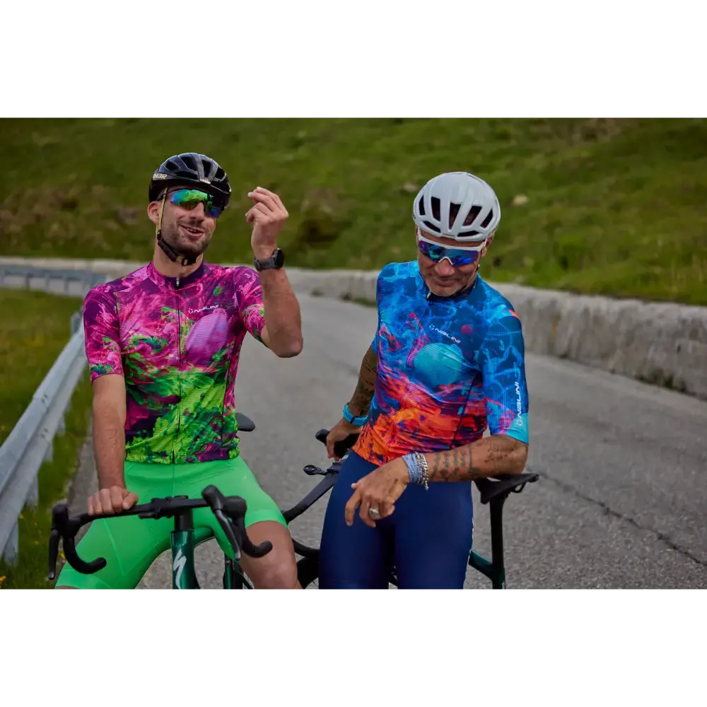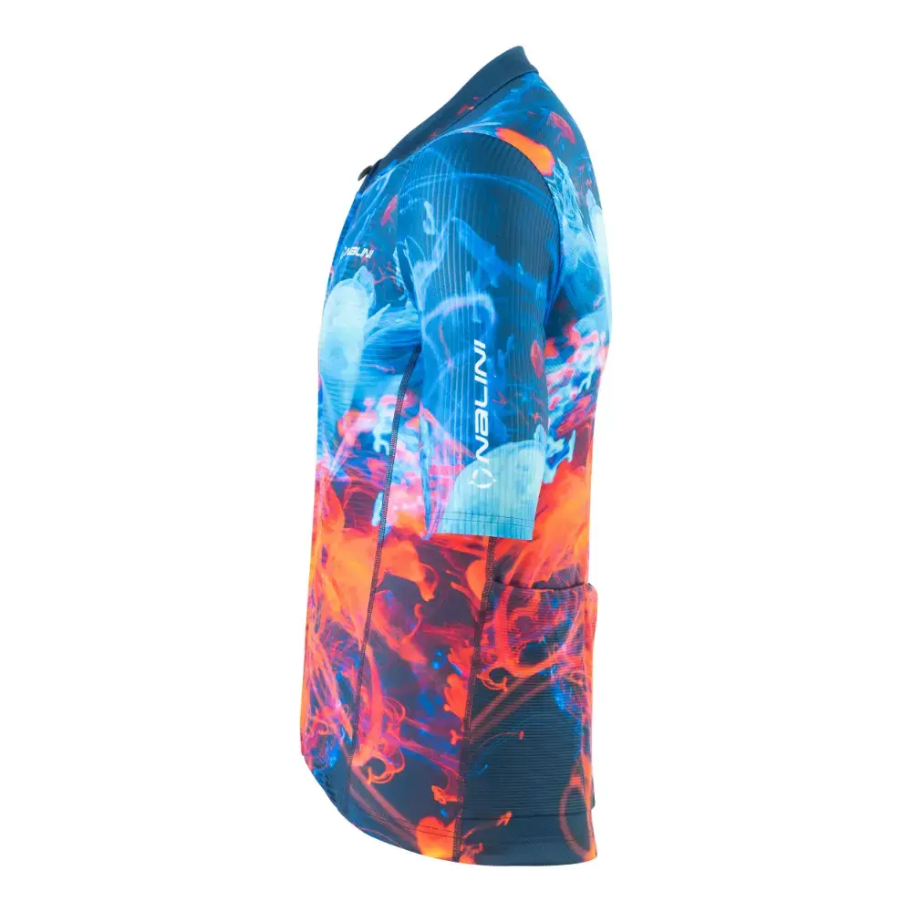 Het Liquid Fietsshirt Korte Mouwen Rood/Blauw Heren is een licht en hoog ademend zomers shirt met raglanmouwen. Het shirt is gemaakt van drie verschillende stoffen: een gestreept, open weefsel aan de voorzijde en mouwen voor optimale ventilatie, en een piqué-stof op het achterpaneel voor extra UPF-bescherming. Alle stoffen zijn voorzien van een quick-dry behandeling voor snelle droging. Het visueel aantrekkelijke ontwerp maakt dit shirt zowel functioneel als stijlvol.
