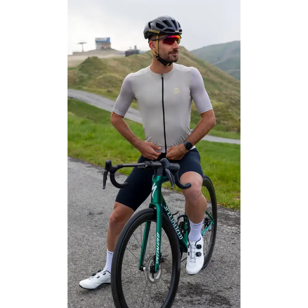 Het Pure Gold fietsshirt is een zeer technisch shirt met een eenvoudig, minimalistisch en strak ontwerp. Gemaakt van een technische stof die sneldrogend is, hoge elasticiteit en herstel biedt, UV-bescherming heeft en extreem zacht aanvoelt, biedt het extra comfort, zelfs met een race-pasvorm. De mouwen zijn gemaakt van een gestructureerde, zeer ademende stof, waardoor het kledingstuk perfect is voor alle weersomstandigheden.