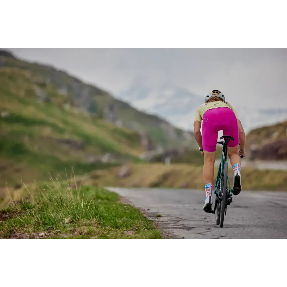De Thunder fietsbroek voor dames is een essentiƫle, functionele en zeer comfortabele korte fietsbroek. De stof op de pijpen en taille is een hoogwaardige compressie-lycra, terwijl de bretels en het rugpand zijn gemaakt van een licht en zacht microvezel-elastiek. Deze combinatie en het gebruik van de speciale dameszeem maken dit de beste keuze voor zowel de ervaren fietser als de beginnende liefhebber.