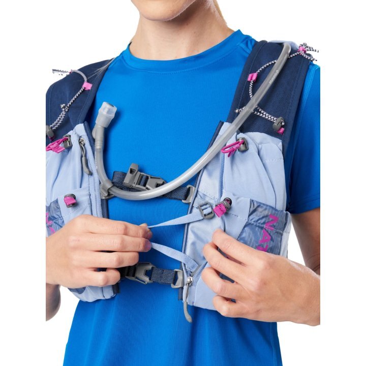 De Nathan Vapor Airess 3.0 is de beste versie tot nu toe, speciaal ontworpen voor de vrouwelijke hardloper. Dit lichtgewicht drinkvest combineert nieuwe materialen met een slim, functioneel ontwerp voor ongeëvenaard comfort en gebruiksgemak. De schouderbanden en het rugpaneel zijn gemaakt van een dubbellaags, vochtafvoerend mesh voor maximaal ademend vermogen. Het Adaptive-Fit systeem zorgt voor een perfecte, nauwsluitende pasvorm zonder schuren, specifiek voor het vrouwelijk lichaam. Nieuw zijn de extra opbergmogelijkheden, zoals een makkelijk bereikbare ritszak op de rug, kleurrijke bungeekoorden en lussen voor trekkingstokken. Met de meegeleverde 2L waterblaas en diverse vakken voor flacons en essentials ben je klaar voor de langste avonturen op de trails.