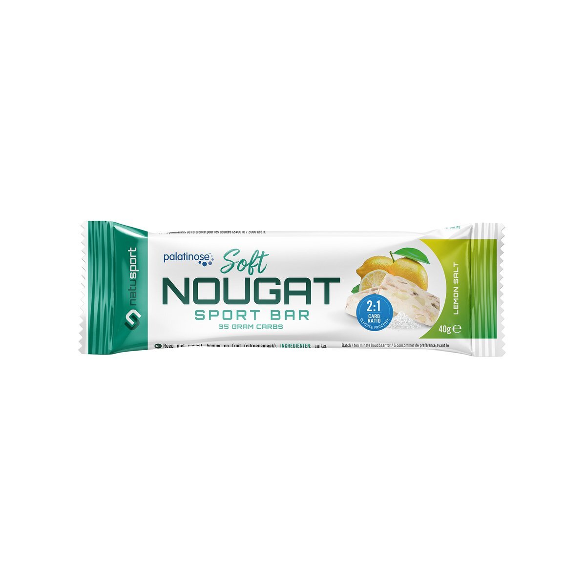 Tijdens langdurige inspanning moet je je brandstof regelmatig aanvullen. Heb je genoeg van de repen en gels? Dan is het tijd voor een Natusport Soft Nougat Sport Bar met een heerlijke fruitige smaak. Veel koolhydraten in weinig gewicht, want een reep van 40 g bevat maar liefst 35 g koolhydraten. Daarnaast is de reep ook nog eens erg lekker en hapt gemakkelijk weg. De glucose:fructose verhouding van 2:1 en de toevoeging van Palatinose zorgen voor een optimale opname van koolhydraten. Kortom, een efficiënte hap voor onderweg! Palatinose is een suiker, die wat langzamer wordt opgenomen. In combinatie met de anbdere suikers geeft dit een meer gespreide en optimale opname van koolhydraten.