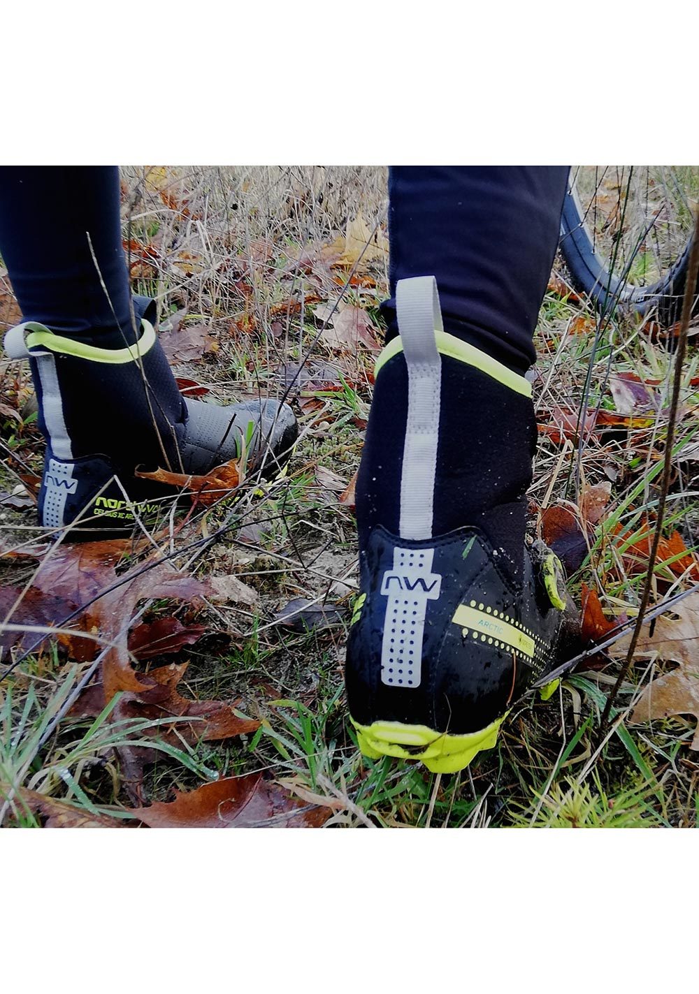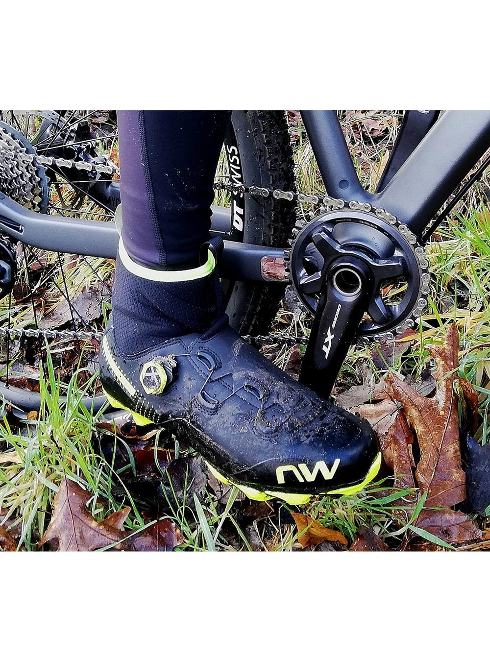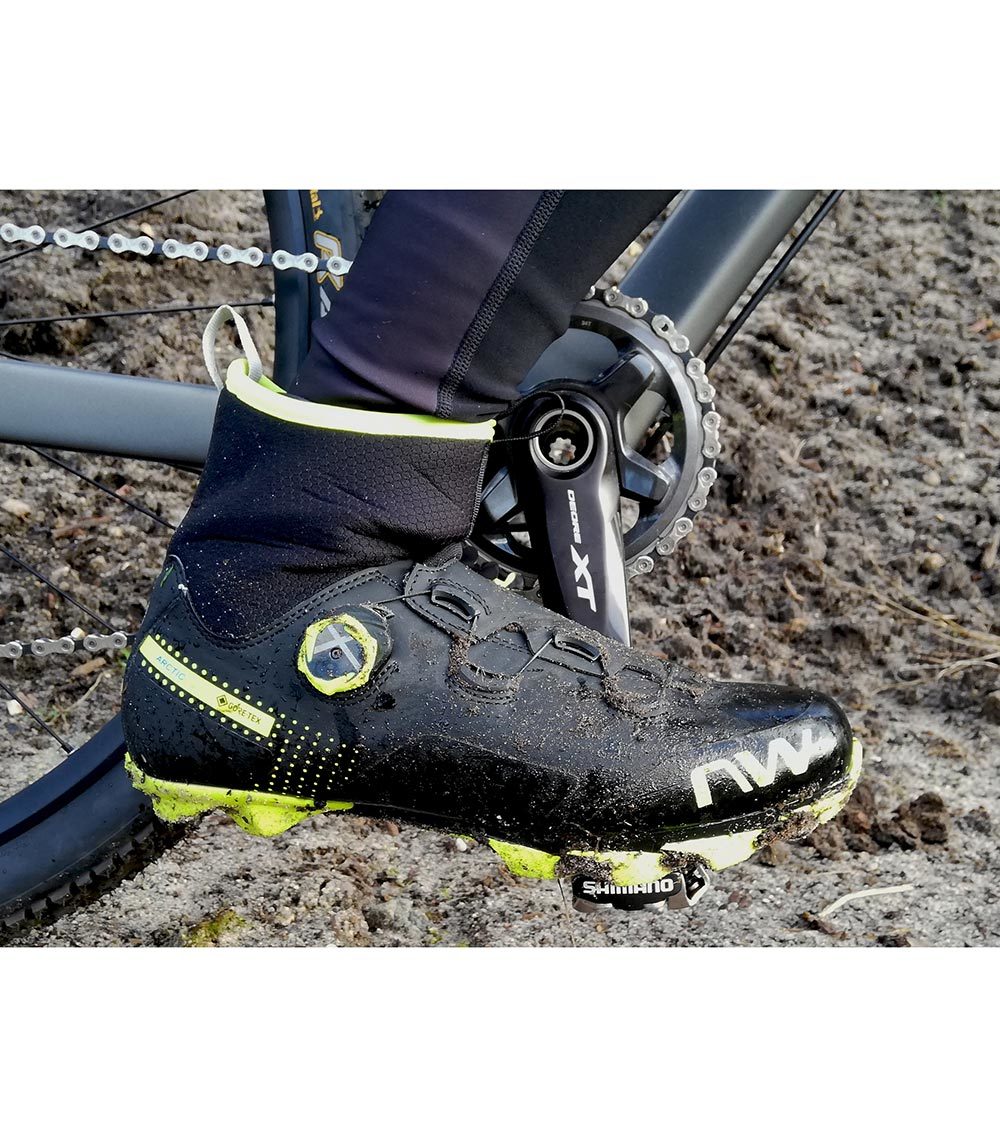 De Northwave Celsius XC Arctic GTX mountainbikeschoenen zijn ideaal om mee te fietsen in zeer koude omstandigheden. Deze schoenen zijn extra hoog waardoor ze tot de enkel komen en sluiten ook erg mooi aan. Het GORE-TEX membraan zorgt ervoor dat de schoen waterdicht is, winddicht is en ook nog eens een erg goed ademend vermogen heeft. De zool is versterkt met carbon en heeft een stijfheidsindex van 8.0 waardoor je al je kracht goed op de pedalen kan overbrengen. Het SLW2 dial vetersysteem is zeer precies af te stellen tot de perfecte pasvorm en met één beweging los te maken. Of juist beetje bij beetje te openen, om zo de perfecte pasvorm te vinden. Het verhoogde stuk rondom de enkels is gemaakt van isolerend en elastisch neopreen, welke dankzij de GORE-TEX technologie ook water en wind tegen houdt. In combinatie met het vier lagen dikke Arctic GTX voetbed en de isolerende voorvoet zorgt dit voor gegarandeerd warme voeten. Verder hebben de schoenen rondom reflecterende details, een verstevigde neus en een zeer grof profiel op de buitenzool voor 360 graden zichtbaarheid, duurzaamheid en veel grip. En extra aantrekkelijk is het feit dat deze LMTD editie exclusief is voor FuturumShop in de Benelux!