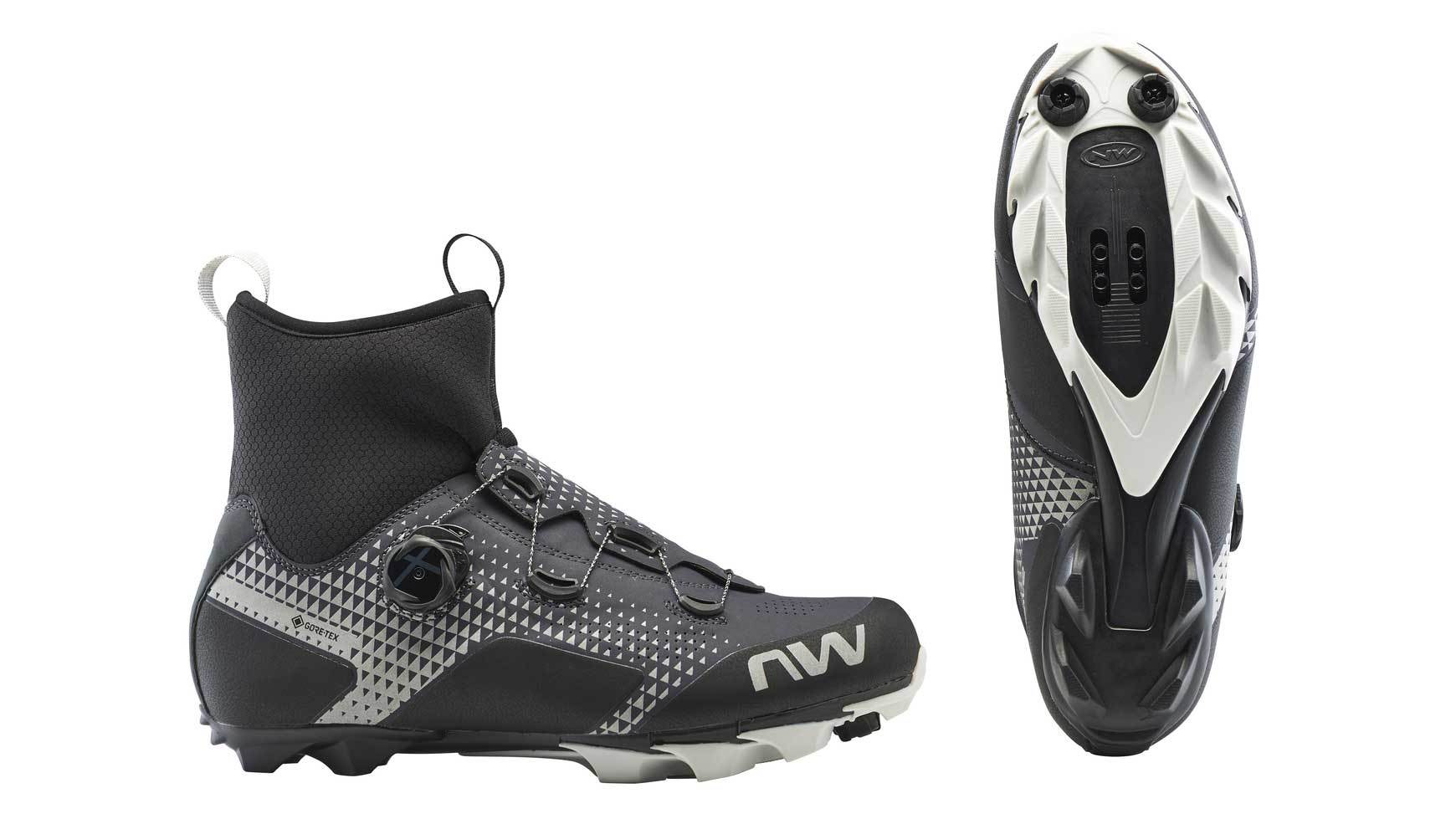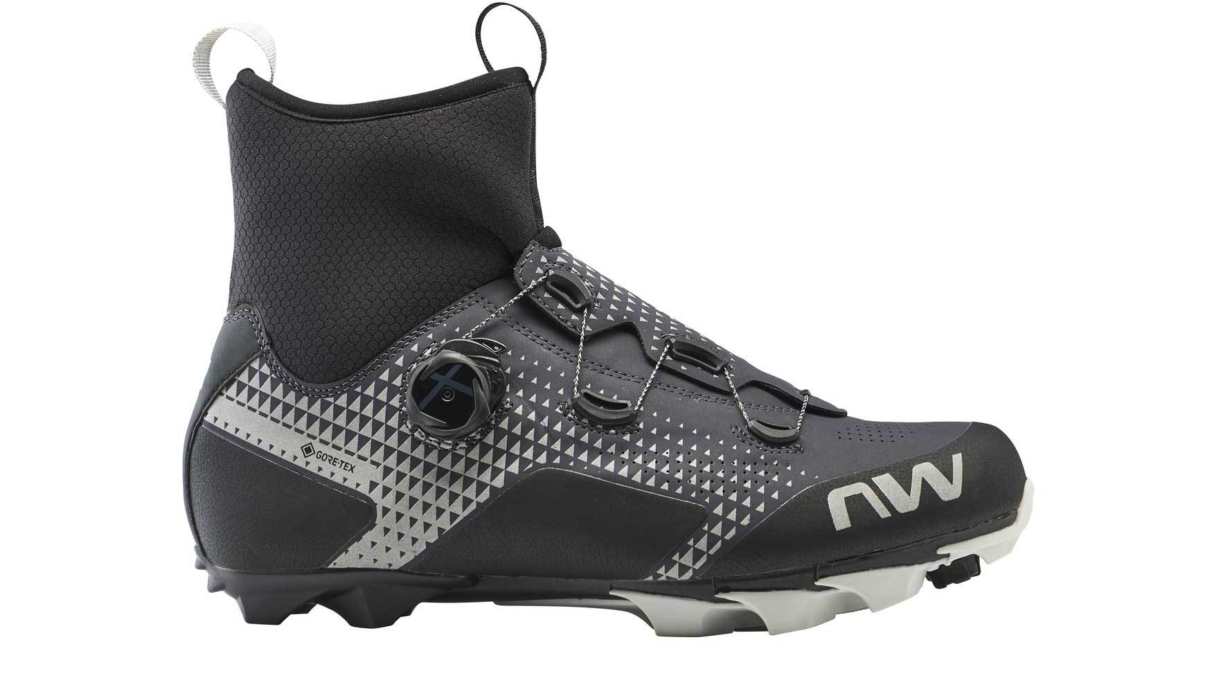 De Northwave Celsius XC GTX mountainbikeschoenen zijn ideaal om mee te fietsen in milde winterse omstandigheden. Deze schoenen zijn extra hoog waardoor ze tot de enkel komen en sluiten ook erg mooi aan. Het GORE-TEX membraan zorgt ervoor dat de schoen waterdicht is, winddicht is en ook nog eens een erg goed ademend vermogen heeft. De zool is versterkt met carbon en heeft een stijfheidsindex van 8.0 waardoor je al je kracht goed op de pedalen kan overbrengen. Het SLW2 dial vetersysteem is zeer precies af te stellen tot de perfecte pasvorm en met één beweging los te maken. Of juist beetje bij beetje te openen, om zo de perfecte pasvorm te vinden. Het verhoogde stuk rondom de enkels is gemaakt van isolerend en elastisch neopreen, welke dankzij de GORE-TEX technologie ook water en wind tegen houdt. In combinatie met het warme voetbed en de isolerende voorvoet zorgt dit voor warme voeten. Verder hebben de schoenen rondom reflecterende details, een verstevigde neus en een zeer grof profiel op de buitenzool voor 360 graden zichtbaarheid, duurzaamheid en veel grip.