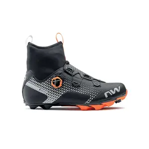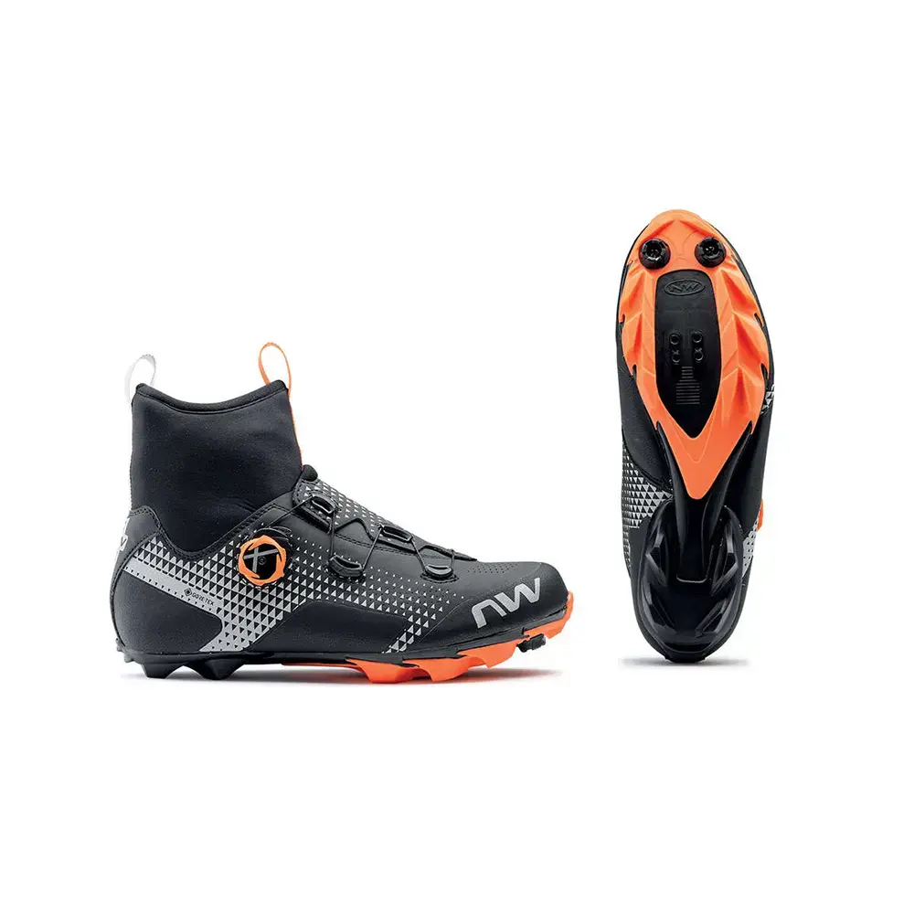 De Northwave Celsius XC GTX mountainbikeschoenen zijn ideaal om mee te fietsen in milde winterse omstandigheden. Deze schoenen zijn extra hoog waardoor ze tot de enkel komen en sluiten ook erg mooi aan. Het GORE-TEX membraan zorgt ervoor dat de schoen waterdicht is, winddicht is en ook nog eens een erg goed ademend vermogen heeft. De zool is versterkt met carbon en heeft een stijfheidsindex van 8.0 waardoor je al je kracht goed op de pedalen kan overbrengen. Het SLW2 dial vetersysteem is zeer precies af te stellen tot de perfecte pasvorm en met één beweging los te maken. Of juist beetje bij beetje te openen, om zo de perfecte pasvorm te vinden. Het verhoogde stuk rondom de enkels is gemaakt van isolerend en elastisch neopreen, welke dankzij de GORE-TEX technologie ook water en wind tegen houdt. In combinatie met het warme voetbed en de isolerende voorvoet zorgt dit voor warme voeten. Verder hebben de schoenen rondom reflecterende details, een verstevigde neus en een zeer grof profiel op de buitenzool voor 360 graden zichtbaarheid, duurzaamheid en veel grip.