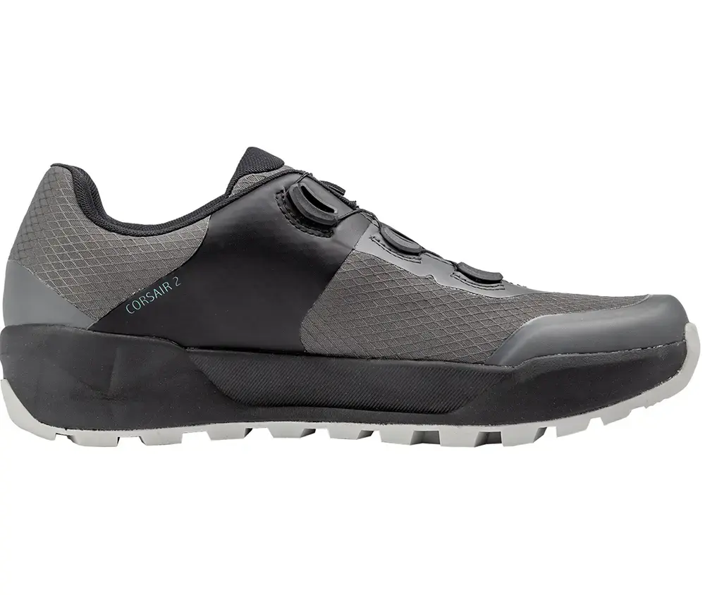 Deze Northwave Corsair 2 mountainbikeschoenen zijn ontworpen om moeiteloos door de natuur te bewegen tijdens intense dagtochten op bergpaden. Deze schoenen zijn ontworpen om van je avontuurlijke route te genieten. Ideaal ook voor het afwisselen van fietsen met klikpedalen en lopen tijdens een tocht. De Damp Evo zool is zowel geschikt om op te lopen als voor clipless pedalen, met een natuurlijk rubber loopvlak voor verbeterde grip en een EVA binnenzool voor geoptimaliseerde schokabsorptie. Je kunt je schoenplaatjes vrij verstellen over een afstand van 35 mm.