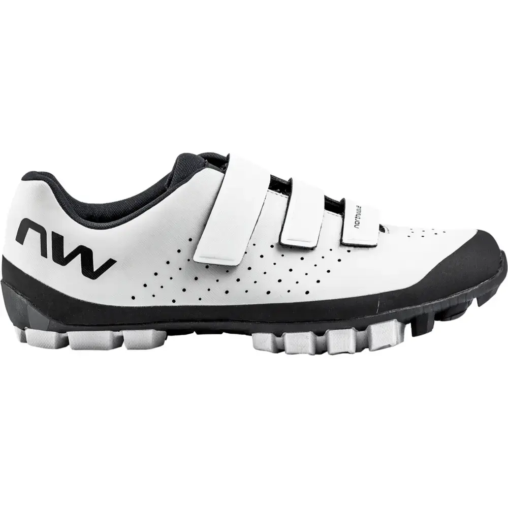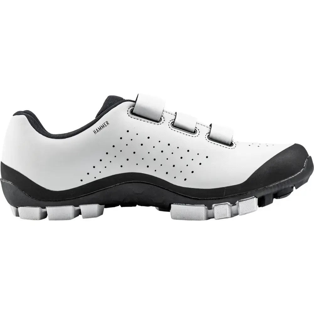 De Northwave Hammer is de perfecte mountainbikeschoen voor de offroad weekend warriors. De schoen heeft een goede pasvorm zonder irritante drukplekken. Dankzij de zool is het geen schande als je even een voetje aan de grond wilt zetten of een net te steile helling al lopend moet voltooien. De microgaatjes aan de zijkanten bieden uitstekende ventilatie en warmteregulatie. De schoen kun je eenvoudig los en vastmaken met klittebandsluiting. Door gebruik te maken van een Jaws EVO zool is de buitenzool flexibel bij de neus en stijf in het midden, waardoor je naast een efficiënte krachtsoverdracht op de pedalen ook soepel naast de fiets kunt lopen.