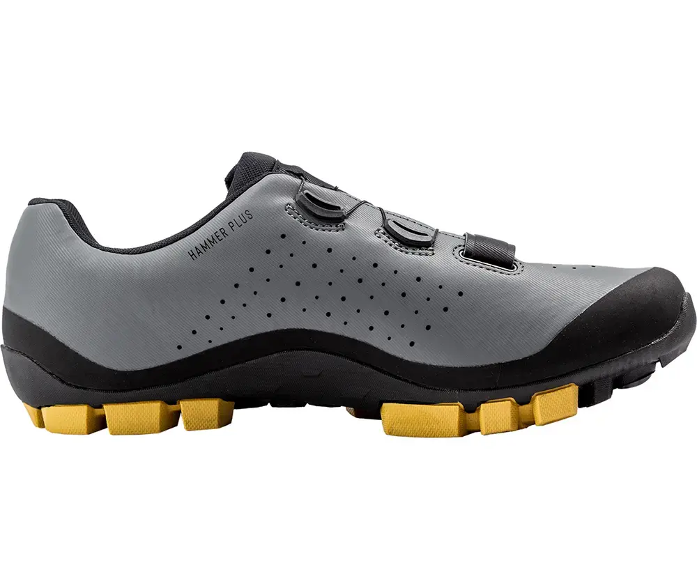 De Northwave Hammer Plus is de perfecte mountainbikeschoen voor de offroad weekend warriors. De schoen heeft een goede pasvorm zonder irritante drukplekken. Dankzij de zool is het geen schande als je even een voetje aan de grond wilt zetten of een net te steile helling al lopend moet voltooien. De microgaatjes aan de zijkanten bieden uitstekende ventilatie en warmteregulatie. Dankzij de SLW3 X0-Dial BOA kun je de bovenschoen met één draai om je voet heen wikkelen. Door gebruik te maken van een Jaws EVO zool is de buitenzool flexibel bij de neus en stijf in het midden, waardoor je naast een efficiënte krachtsoverdracht op de pedalen ook soepel naast de fiets kunt lopen.