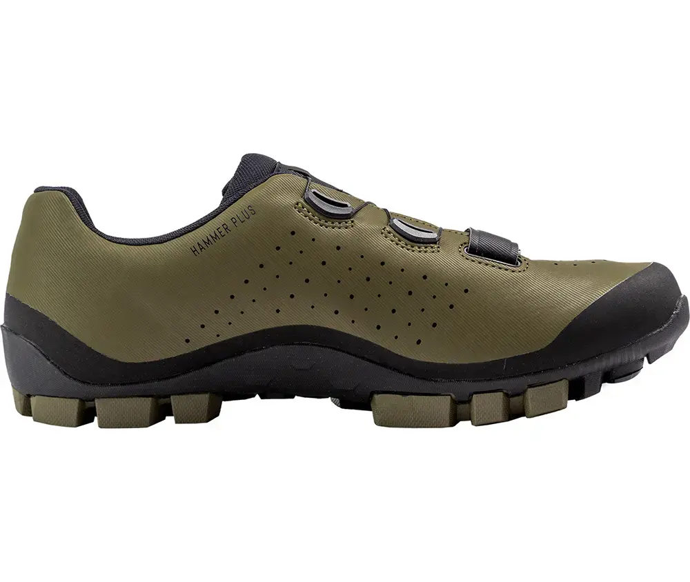 De Northwave Hammer Plus is de perfecte mountainbikeschoen voor de offroad weekend warriors. De schoen heeft een goede pasvorm zonder irritante drukplekken. Dankzij de zool is het geen schande als je even een voetje aan de grond wilt zetten of een net te steile helling al lopend moet voltooien. De microgaatjes aan de zijkanten bieden uitstekende ventilatie en warmteregulatie. Dankzij de SLW3 X0-Dial BOA kun je de bovenschoen met één draai om je voet heen wikkelen. Door gebruik te maken van een Jaws EVO zool is de buitenzool flexibel bij de neus en stijf in het midden, waardoor je naast een efficiënte krachtsoverdracht op de pedalen ook soepel naast de fiets kunt lopen.