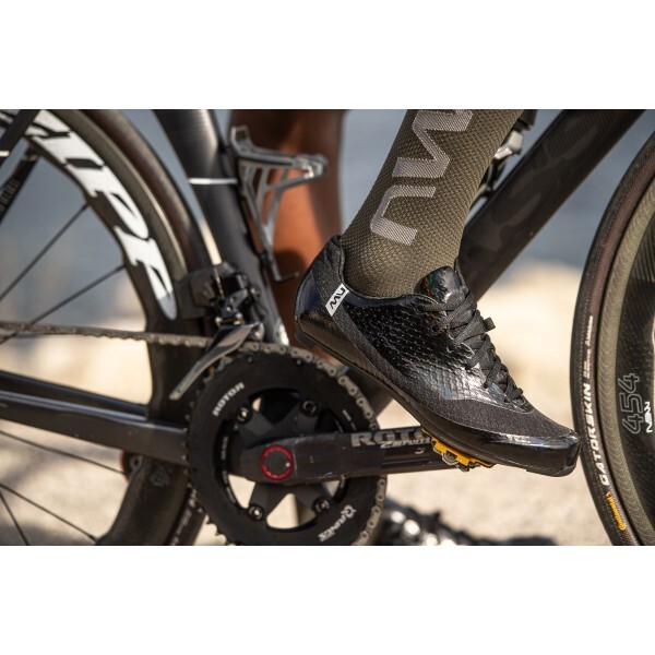 Deze zeer lichte Northwave Mistral wielrenschoen is geschikt voor de professionelere wielrenner. De comfortabele pasvorm in combinatie met een carbon zool zorgt voor een goede overdracht van de energie. Ventilatie van je voeten is verzekerd door de 3D-mesh met zeshoekige cellen. Een geschikte schoen voor lange dagen in het zadel.