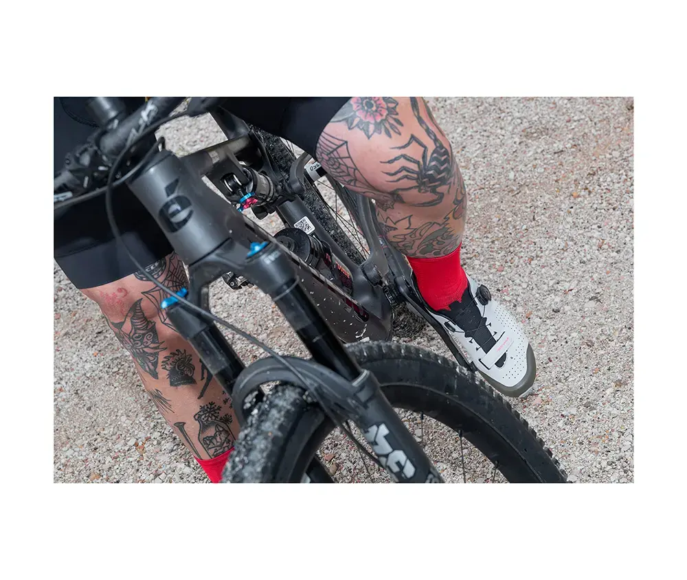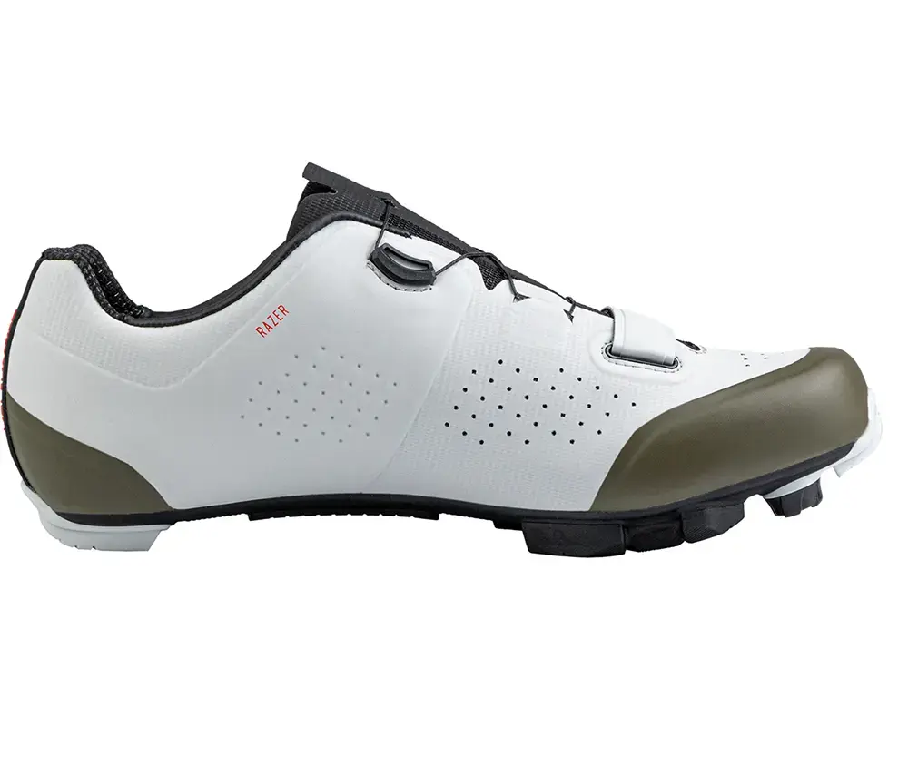 De Northwave Razer Mountainbikeschoenen voor heren zijn perfect voor de veeleisende fietser. Deze schoenen hebben een stugge bovenzijde die mooi om je voeten aan te passen is met het boa systeem met asymmetrisch vetersysteem. De bovenzijde is voorzien van TPU delen die je voeten optimaal beschermen. De onderzool van deze schoenen is ook erg stug, hierdoor gaat er weinig kracht verloren bij het trappen. De zool is voorzien van grote noppen die voor een goede grip zorgen als je even niet in de pedalen zit.