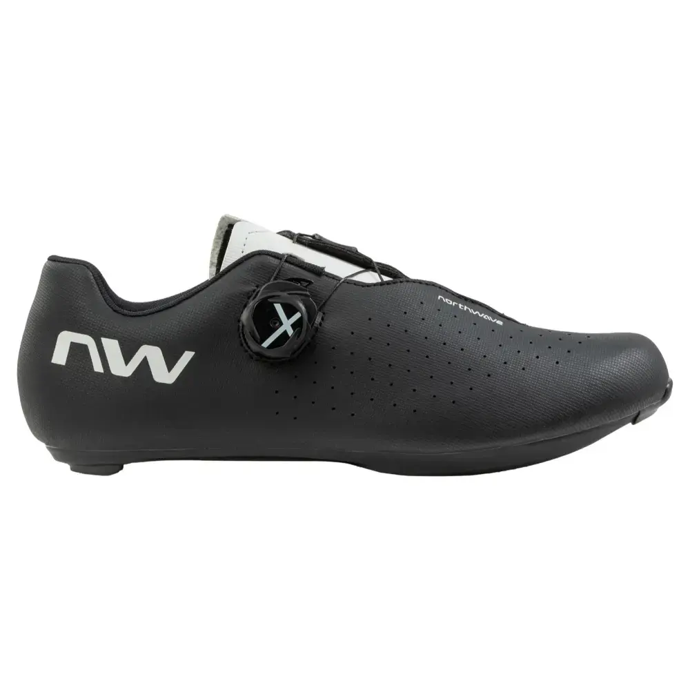Met Northwave Sonic Plus Wide wielrenschoenen geniet je van een lichtgewicht, maar duurzame constructie die de natuurlijke anatomie van je voet volgt. Het Powershape ontwerp biedt uitstekende ondersteuning, met name in het gebied rond de voetboog, terwijl twee ventilatieopeningen in de zool zorgen voor optimale luchtstroom en thermoregulatie. Het X-Dial SLW3 sluitingsysteem zorgt voor micrometrische aanpassingen en een vorm die past als een handschoen, zonder drukpunten. Met een gewicht van slechts 260 gram (maat 43) zijn deze schoenen ideaal voor zowel training als wedstrijd.