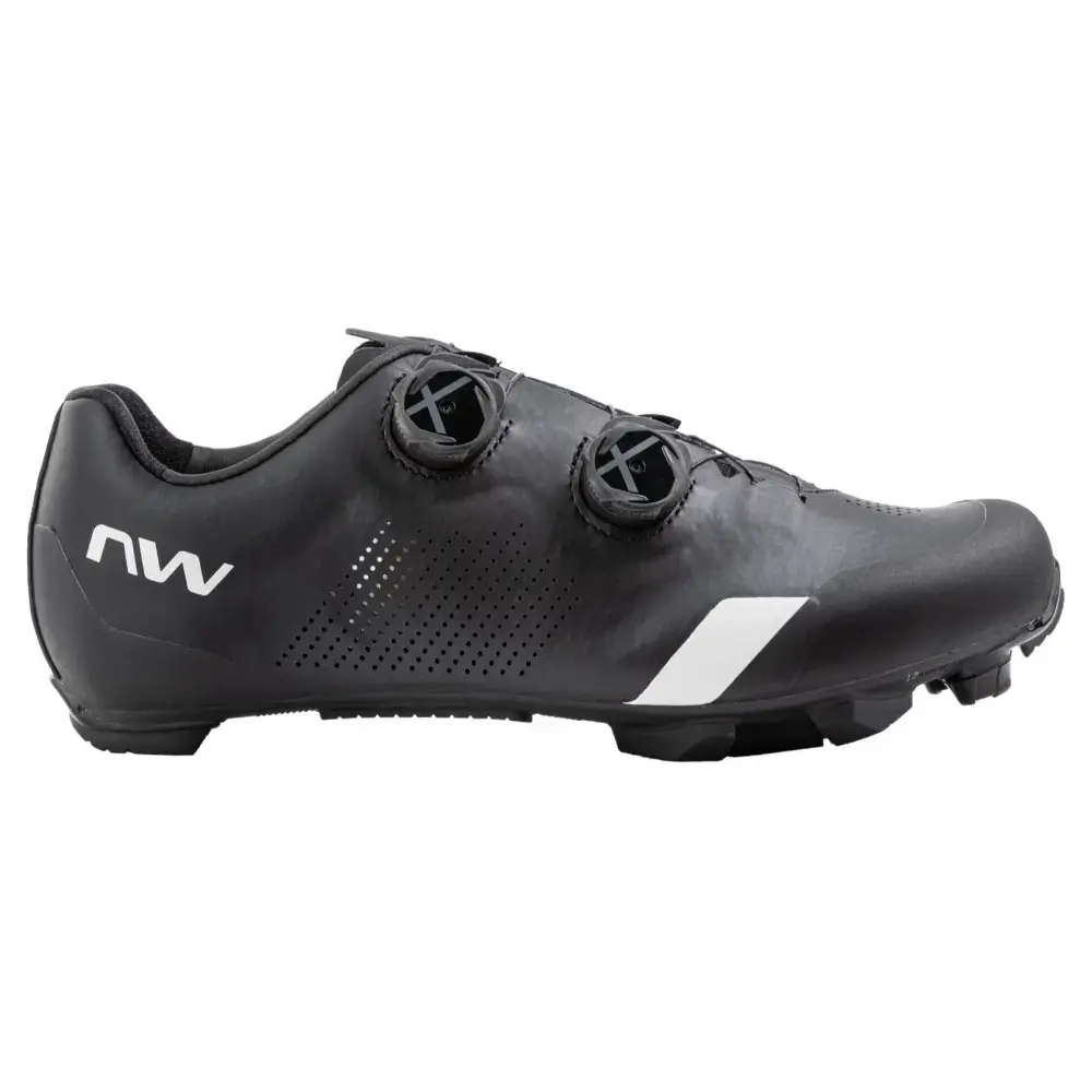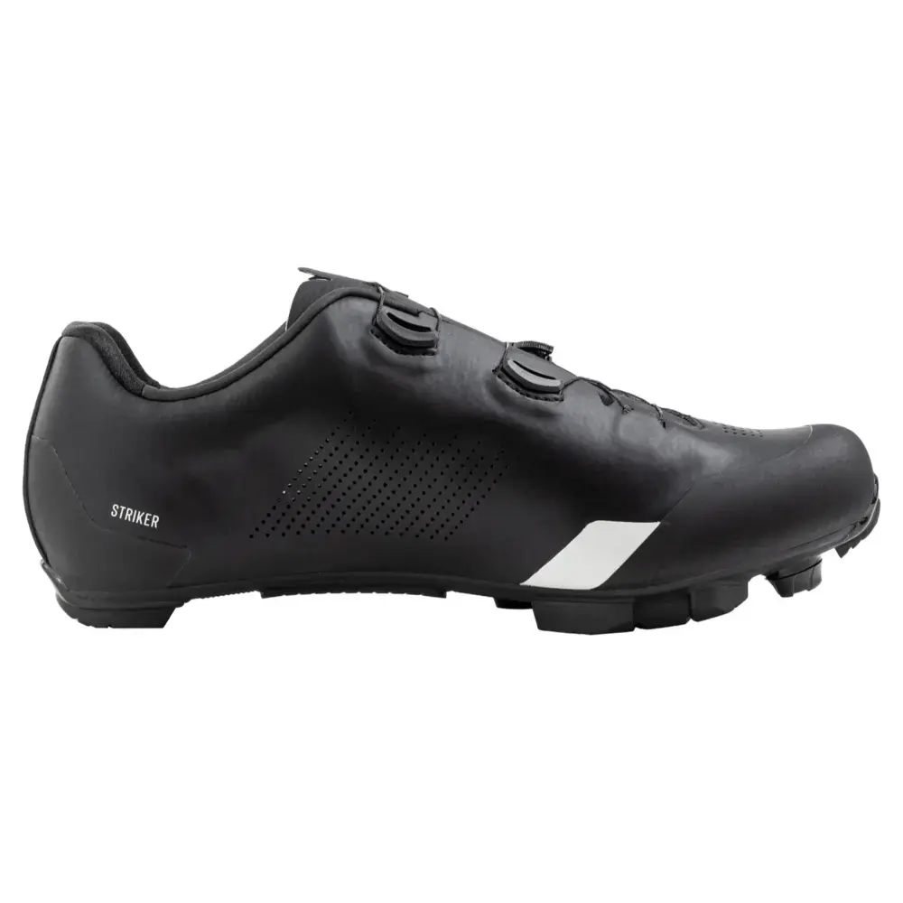 De Northwave Striker Mountainbikeschoenen zijn ontworpen voor de ambitieuze mountainbiker. Dankzij de full-carbon zool met een stijfheidsindex van 12 uit 15 en de XC 12 zool bieden deze schoenen uitstekende krachtoverdracht tijdens het trappen. De TPU-inzetstukken op strategische punten zorgen voor goede grip en slijtvastheid, terwijl het open mesh-tongontwerp en geïntegreerde luchtgaten voor optimale ventilatie zorgen. Het dubbele X-Dial SLW3 sluitingsysteem zorgt voor een nauwkeurige pasvorm en drukverdeling, waardoor drukpunten worden geëlimineerd. De lichtgewicht TPU-versterkingen op de bovenkant beschermen tegen scheuren en schuren, terwijl de georiënteerde vezels in de hiel voor een stevige en veilige pasvorm zorgen.