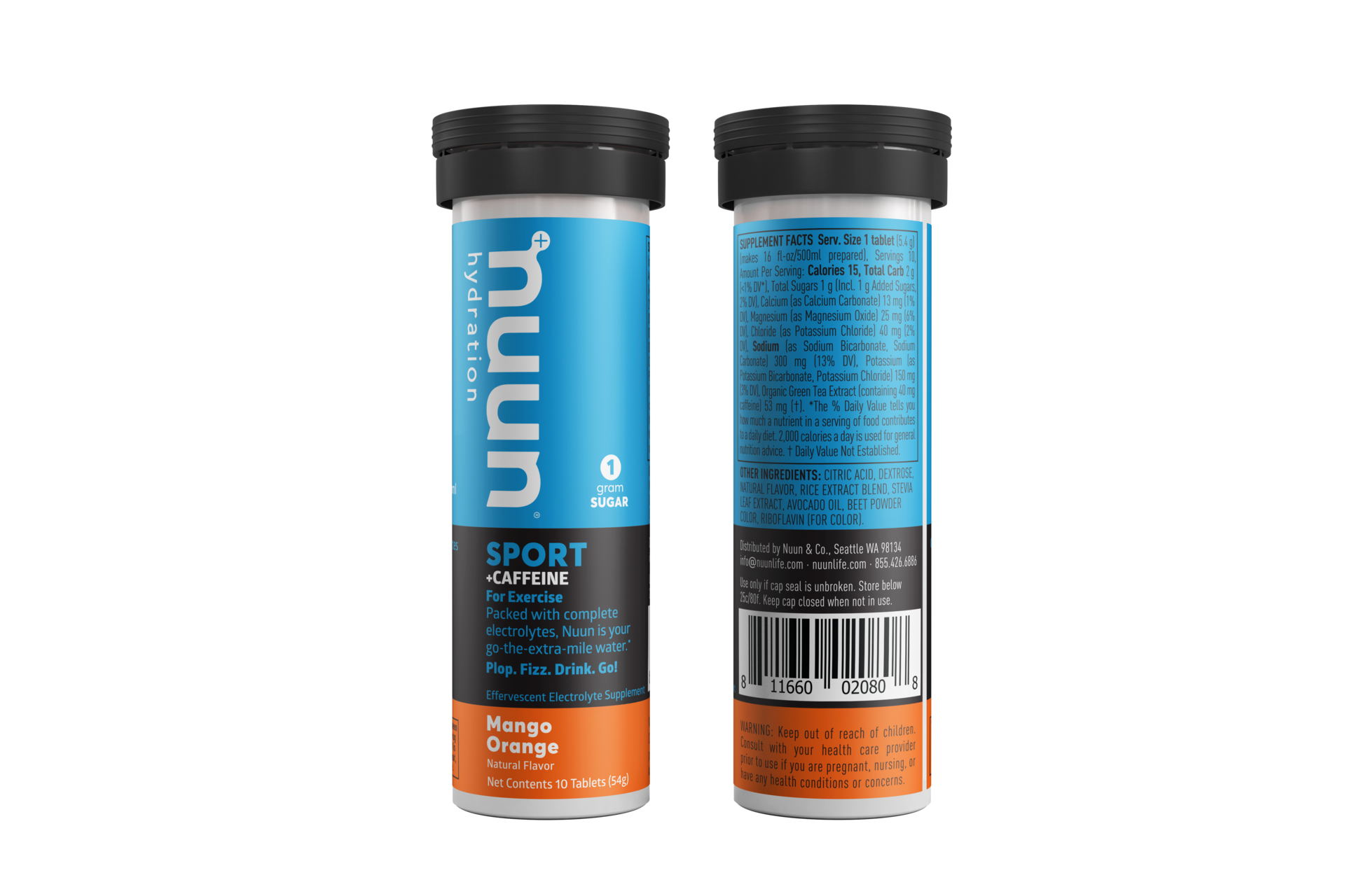 Specificaties NUUN Sport Hydratation Cafeïne Tabletten Mango Sinaasappel 8 x 10 stuks
