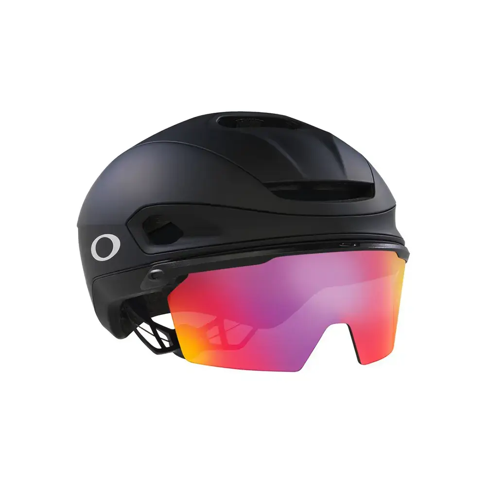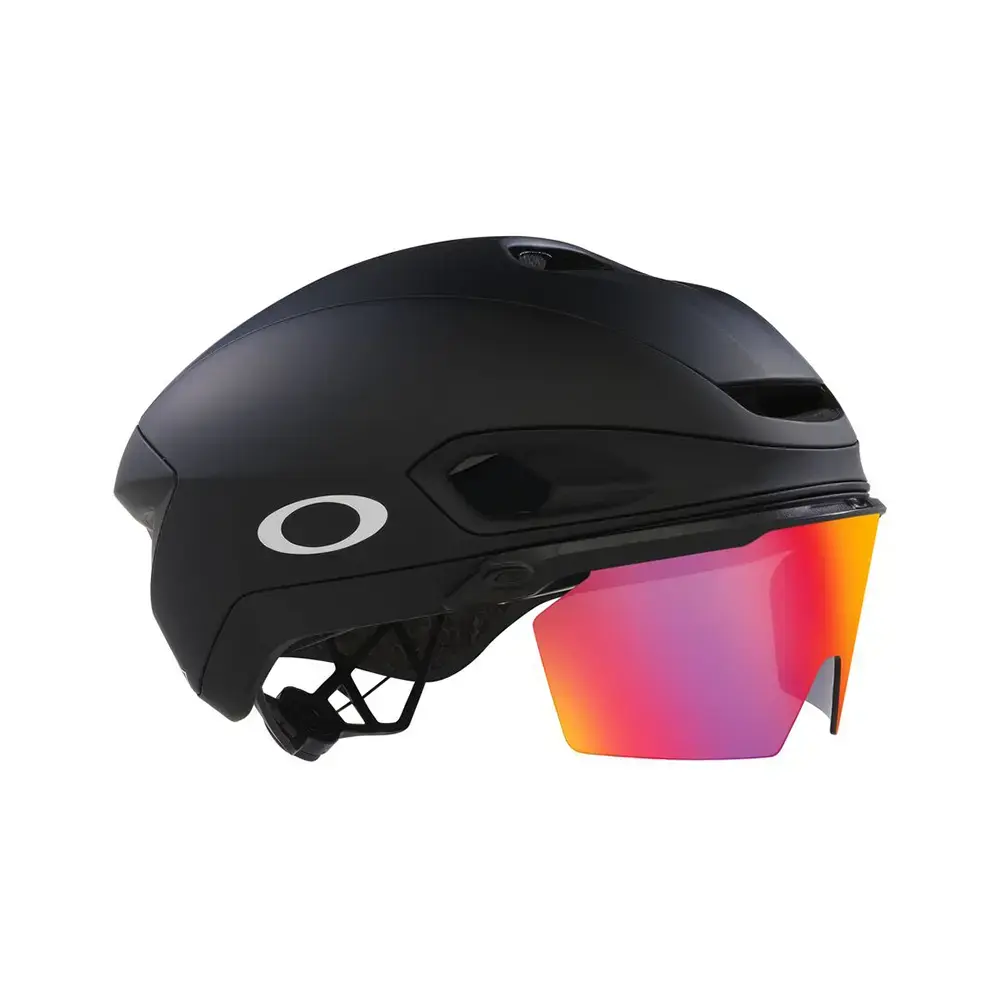 Met de ARO7 Race Fietshelm komt Oakley met een aerodynamische helm die voornamelijk voor tijdrijders en triatleten geschikt is. De helm is ontwikkeld met profrenners en triatleten en van erg goede kwaliteit. De helm is super veilig dankzij de stevige Polycarbonaat shell en het zeer goed beschermende EPS schuim. Bij een eventuele impact zal jouw hoofd dan ook altijd van een goede bescherming profiteren. Opvallend aan de helm is het BOA sluitsysteem achterop wat normaliter alleen voor schoenen gebruikt wordt. De helm wordt geleverd met een Prizm Road vizier. Deze draagt bij aan een beter zichtveld, waarbij kleuren meer helder worden en je veranderingen in de textuur van de ondergrond gemakkelijker waarneemt. Ook handig: de kinband sluit magnetisch, zodat je tijd bespaart tijdens een triatlon.
