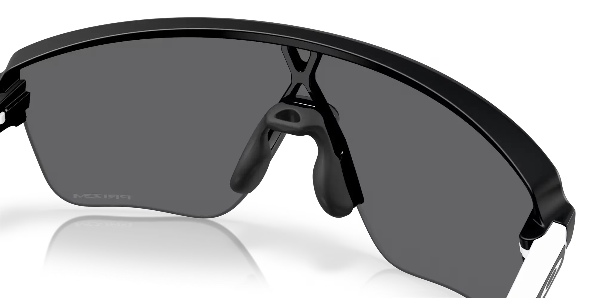 Unobtainium®Het OAKLEY drie-punten-design zorgt ervoor dat het montuur het gezicht alleen op de neusbrug en de slapen raakt. Hierdoor biedt de bril comfort, performance en een nauwkeurige uitlijning van de lenzen. De montuurgeometrie zorgt voor een maximaal perifeer zichtveld.