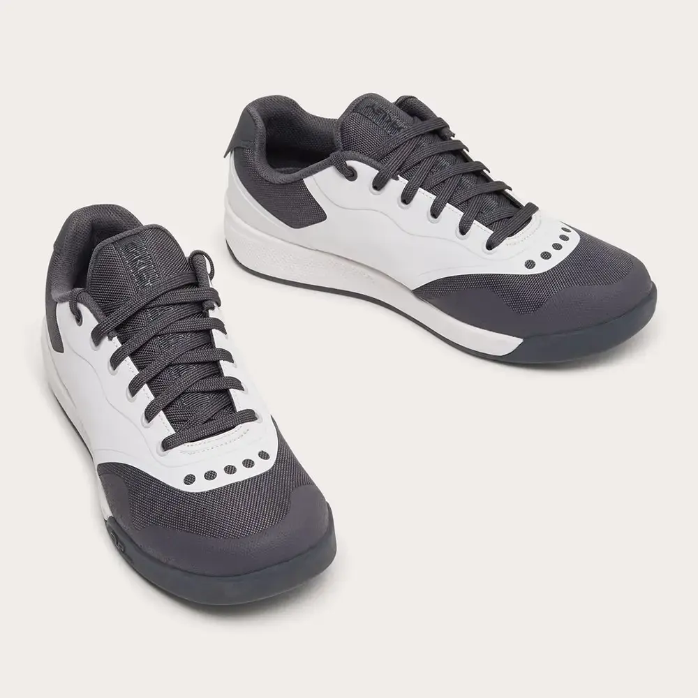 De Drift RC Mountainbikeschoenen van Oakley zijn comfortable schoenen voor jouw ritten over elk soort terein. Het zijn stijlvolle flat-pedal schoenen, die ook naast de fiets erg stijlvol ogen. Het voordeel van schoenen platte pedalen is dat je geen tijd en energie kwijt bent met het in en uit klikken, terwijl je via de zool wel een efficiënte krachtoverdracht behoudt. Boven de tenen en langs de zijkanten zijn ademende panelen aangebracht zodat je voeten koel blijven tijdens lange en warme ritten. De neus van de schoen is gemaakt van stevig rubber, waardoor deze langer meekan. De ergonomisch gevormde 3D tong van de schoen zorgt voor een comfortabel gevoel tijdens het fietsen.