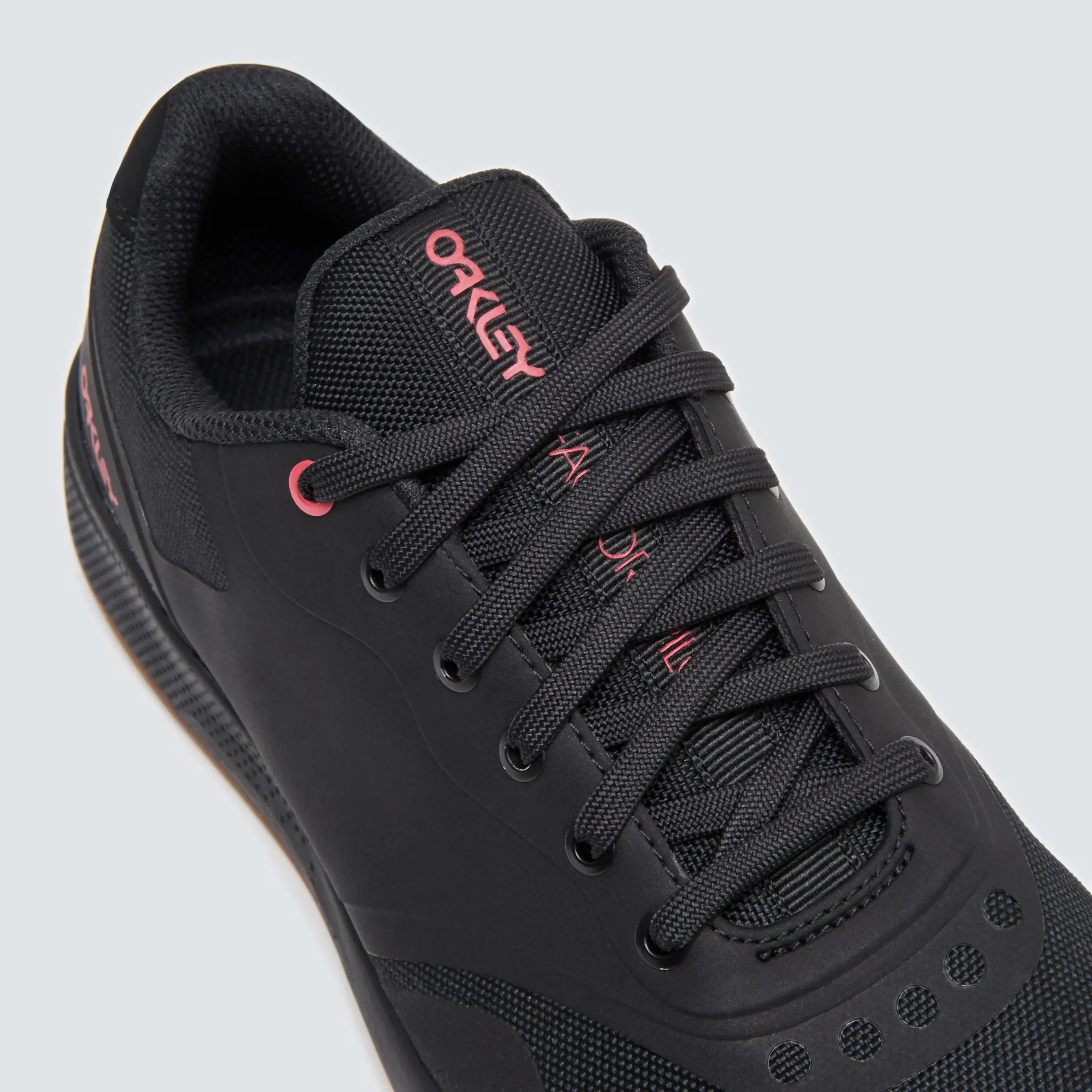 De Drift RC Mountainbikeschoenen van Oakley zijn comfortable schoenen voor jouw ritten over elk soort terein. Het zijn stijlvolle flat-pedal schoenen, die ook naast de fiets erg stijlvol ogen. Het voordeel van schoenen platte pedalen is dat je geen tijd en energie kwijt bent met het in en uit klikken, terwijl je via de zool wel een efficiënte krachtoverdracht behoudt. Boven de tenen en langs de zijkanten zijn ademende panelen aangebracht zodat je voeten koel blijven tijdens lange en warme ritten. De neus van de schoen is gemaakt van stevig rubber, waardoor deze langer meekan. De ergonomisch gevormde 3D tong van de schoen zorgt voor een comfortabel gevoel tijdens het fietsen.