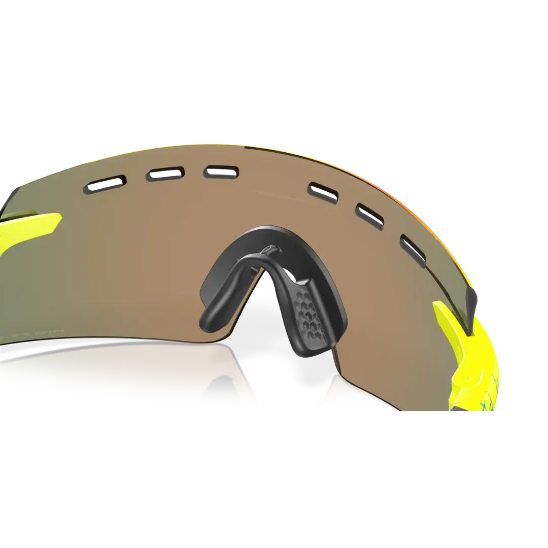 Unobtainium®Het OAKLEY drie-punten-design zorgt ervoor dat het montuur het gezicht alleen op de neusbrug en de slapen raakt. Hierdoor biedt de bril comfort, performance en een nauwkeurige uitlijning van de lenzen. De montuurgeometrie zorgt voor een maximaal perifeer zichtveld.