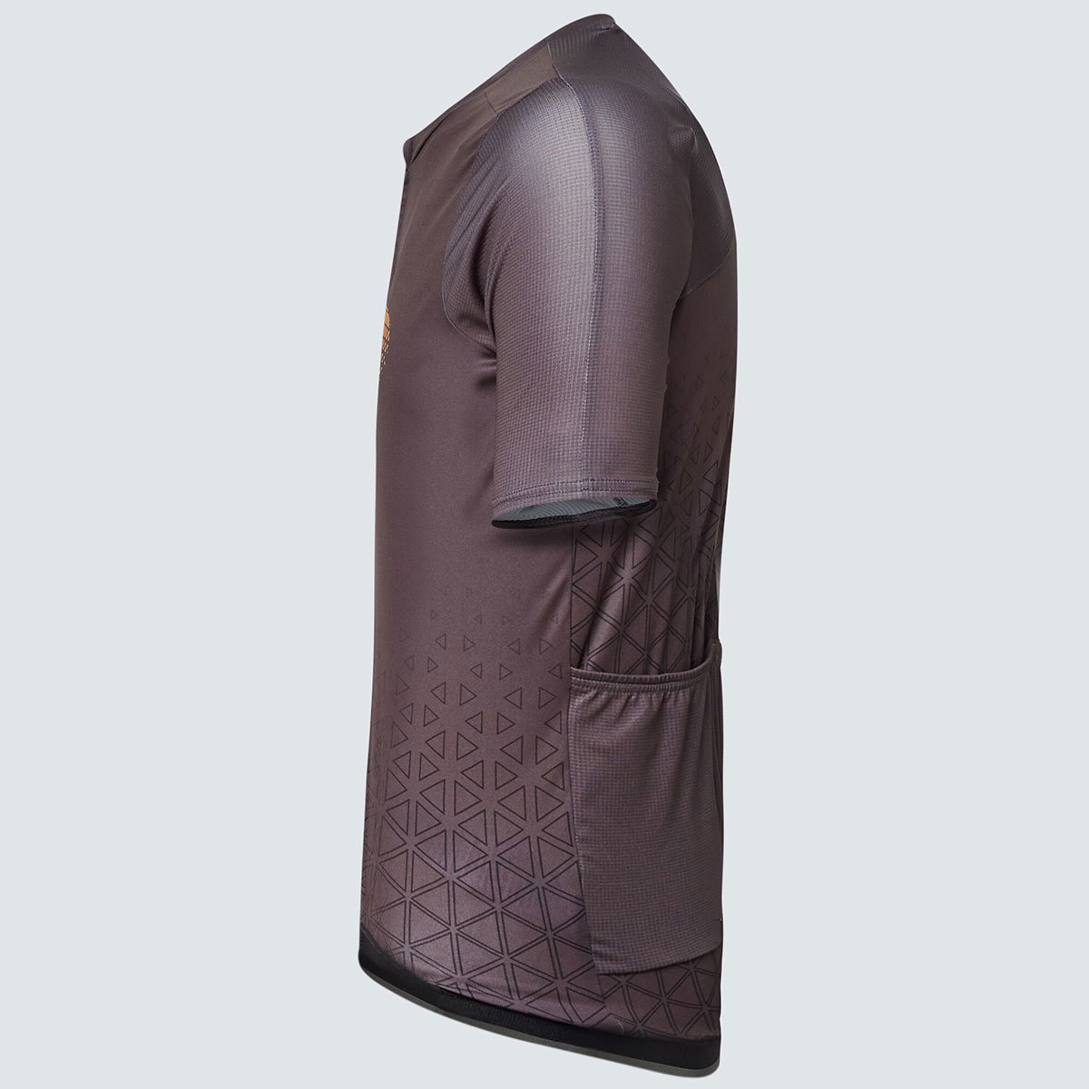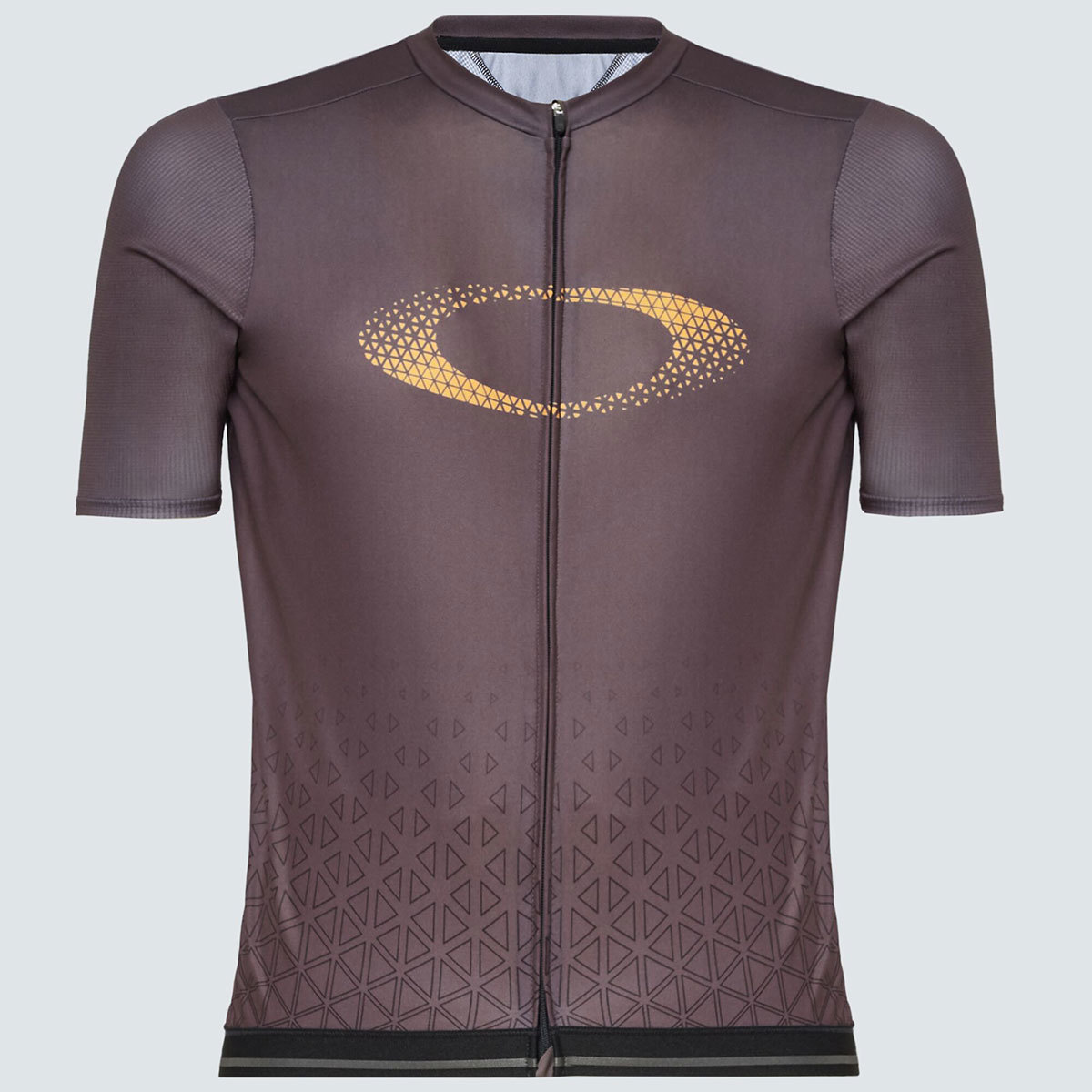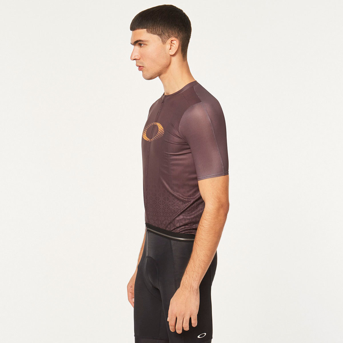 Dit Pkble fietsshirt van Oakley is vederlicht en is een typisch zomers wielershirt die zorgt voor optimale ventilatie en temperatuurregulatie. Door gebruik van mesh materiaal in de mouwen en achterzijde van de schouders kun je je lichaamswarmte makkelijker kwijt en raak je niet snel oververhit. Het prachtige en opvallende karakter wordt gegeven door unieke graphics en een herkenbaar Oakley logo op de borst. De verlengde achterzijde bedekt je onderrug ook als je onderin de beugels rijdt. Om opkruipen te voorkomen is er een siliconen band aan de binnenzijde van de elastische tailleband gemaakt. Het shirt bevat drie achterzakken, waarvan de rechter ook nog voorzien is van een extra ritsvak om je meest dierbare items veilig op te bergen. Reflecterende elementen op de rug laten je net wat beter opvallen.