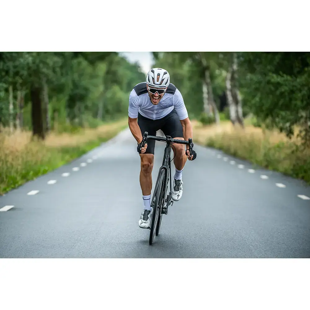 De Oakley Jawbreaker Sport Zonnebril is één van de topmodellen van Oakley, het beschermt je ogen 100% tegen UV-straling. De PRIZM Black Lens heeft een lichtdoorlatendheid van 11% en is geschikt voor felle zon. De lens verscherpt contrasten, details en kleuren, zodat je beter ziet waar je fietst. Zo kan je optimaal reageren op hetgeen dat voor je gebeurt. Deze fietsbril sluit goed om het hoofd aan dankzij de pasvorm die op drie punten (neus en de brilpootjes) is afgestemd. Deze punten raken altijd het hoofd en bevatten antislipdelen, zodat de bril zijn grip goed behoudt. De bril heeft ventilatieopeningen die luchtstromen kunnen beïnvloeden, zodat het hoofd gekoeld wordt en de bril niet beslaat.