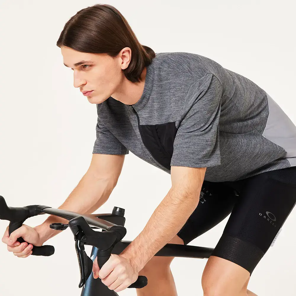 Het Oakley Off Grid Tech Gravel Fietsshirt Korte Mouwen is speciaal ontworpen voor avontuurlijke gravelritten en wisselende weersomstandigheden. Dankzij de merino wol-mix biedt dit shirt natuurlijke thermoregulatie, waardoor je koel blijft in de warmte en warm in koelere omstandigheden. Het DWR-behandelde achterpaneel beschermt tegen opspattend water van het achterwiel, terwijl de ademende mesh borstzak een handige opbergmogelijkheid biedt. De 3/4-rits maakt het gemakkelijk om extra ventilatie toe te voegen tijdens intensieve ritten. Een praktische toevoeging is de Eyewear Protection Loop (EPL) aan de achterkant, waarmee je je bril veilig kunt opbergen wanneer je hem niet gebruikt. De subtiele Oakley Off Grid grafische details maken het shirt stijlvol en functioneel voor lange ritten buiten de gebaande paden.